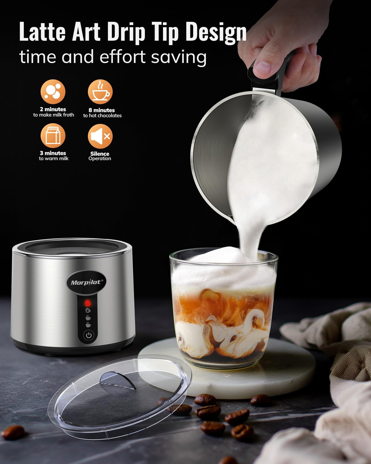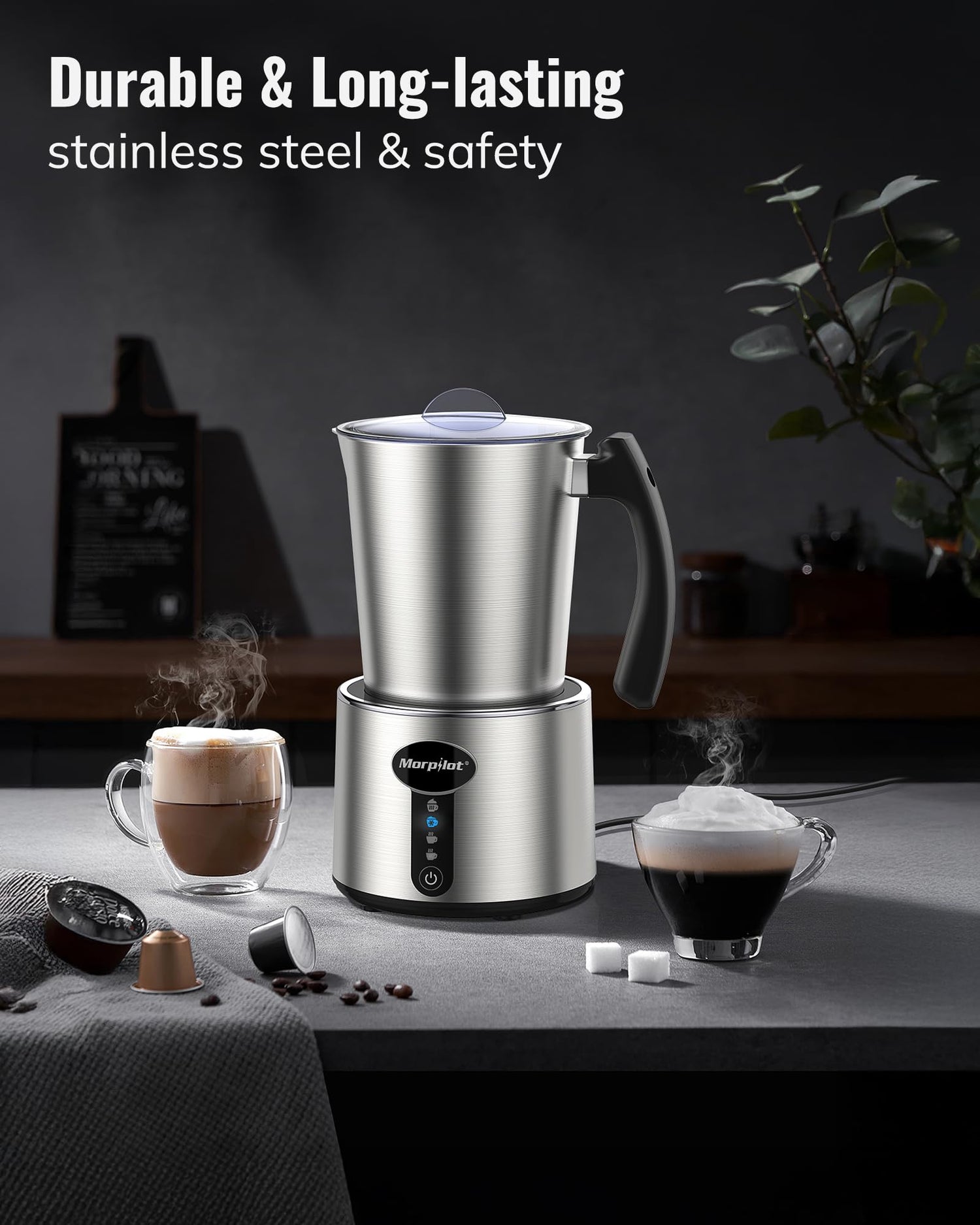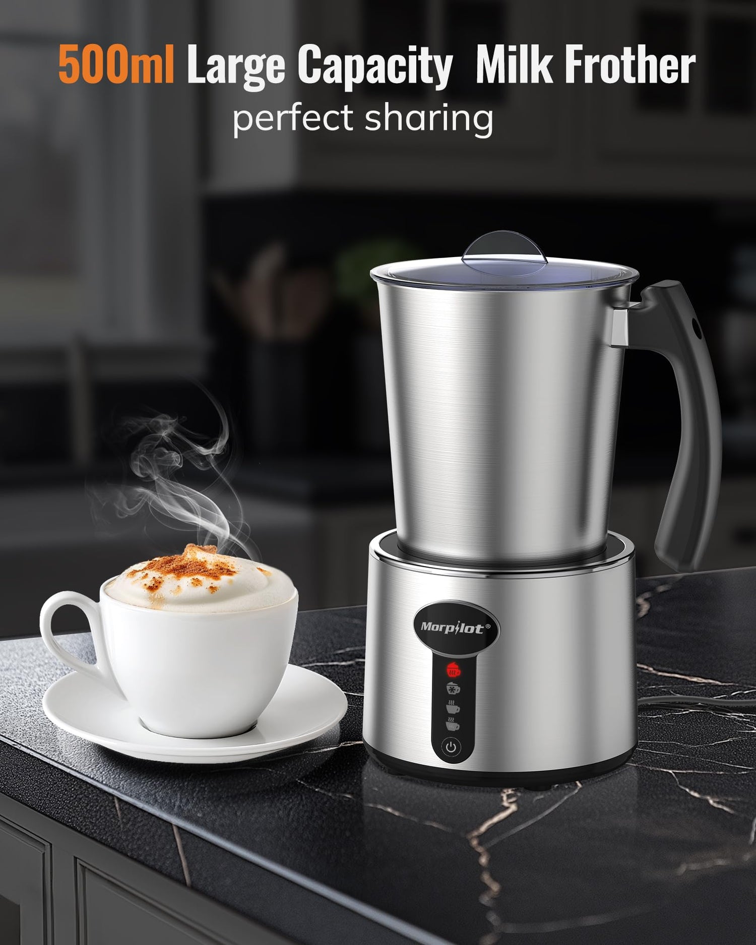 Morpilot Milchaufschäumer Elektrisch 4 in 1, 100-500ml, Milchschäumer für Heißer und Kalter Milchschaum und Schokolade, Antihaftbeschichtung, Spülmaschinenfest, Edelstahl