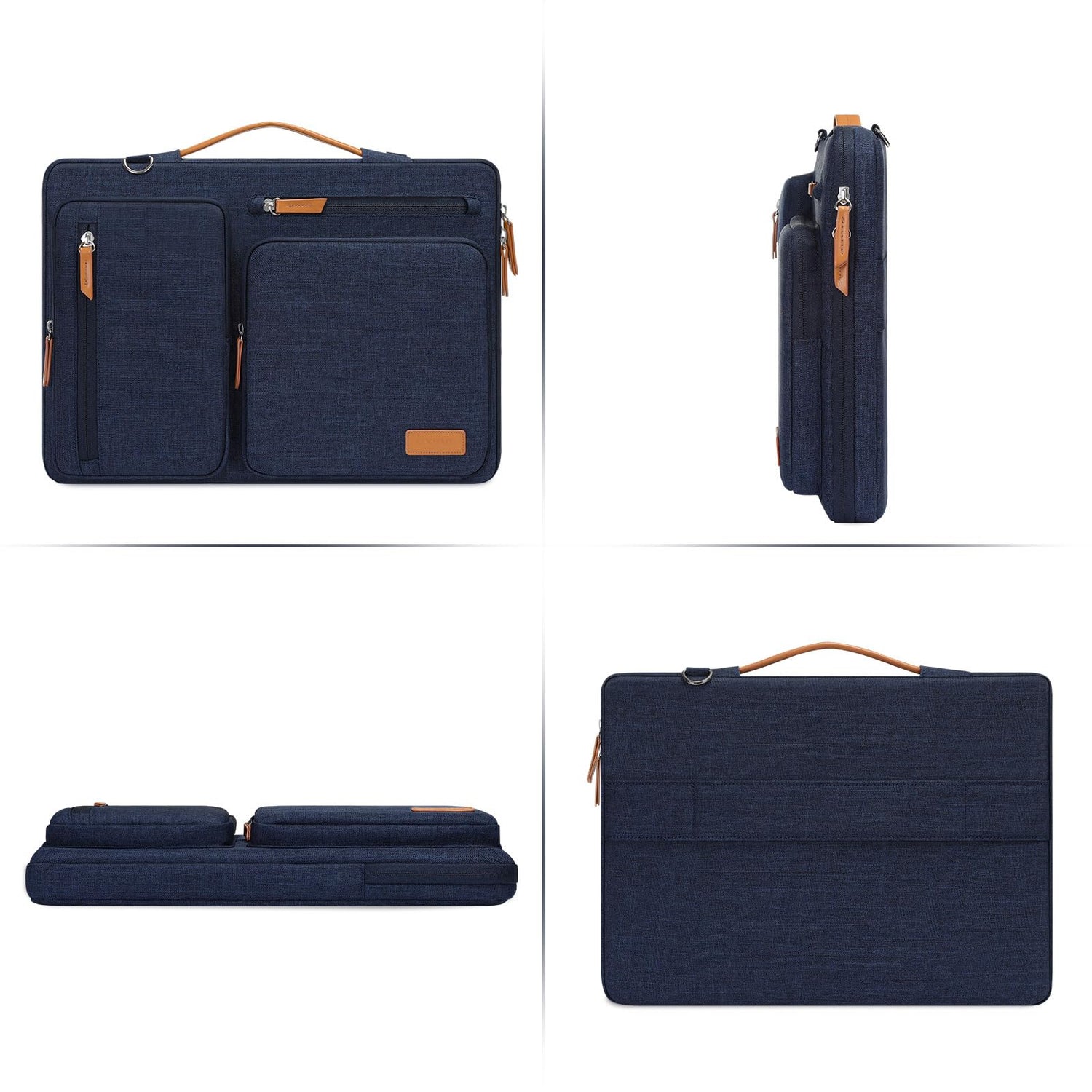 MOSISO 360 Schützend Laptop Schultertasche,15-15,6 Zoll Laptoptasche Kompatibel mit MacBook Pro 16,HP,Dell,Lenovo,Asus Notebook,Seite Offen Tasche mit 4 Reißverschluss Taschen&Griff,Marineblau