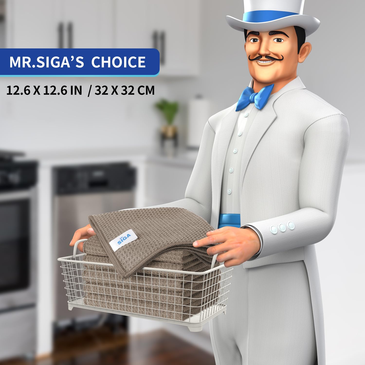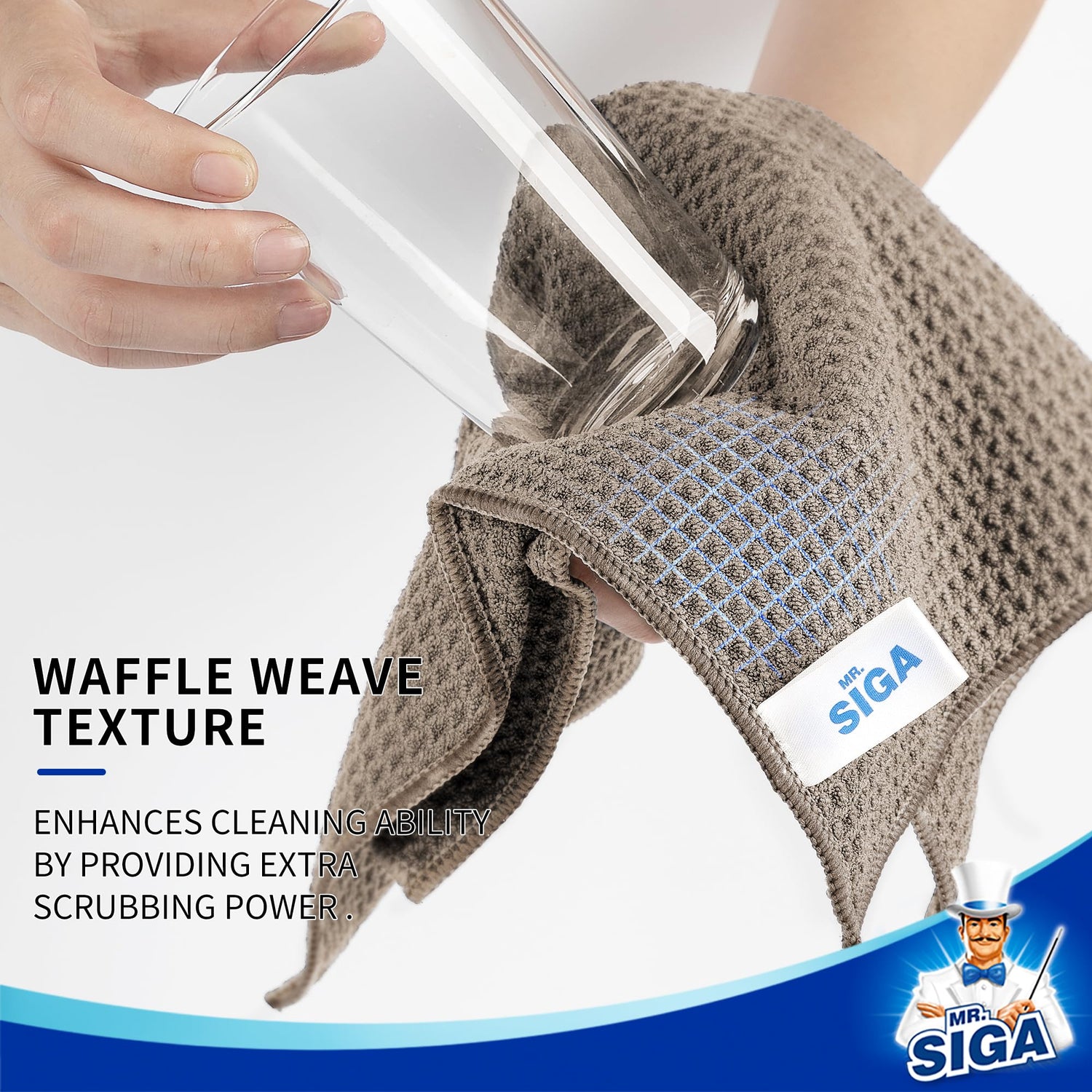 MR.SIGA Waffeltücher Mikrofasertuch, wiederverwendbar Putztücher saugfähige Reinigungstücher Mikrofaser Lappen Putztücher Fenster Tücher Mikrofasertücher Geschirrtücher, 6 Stücke, Braun
