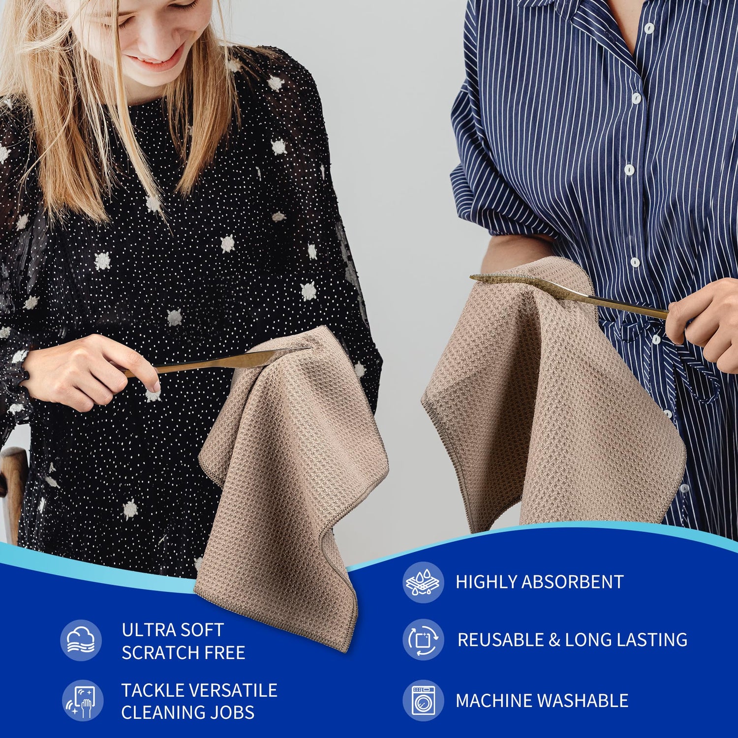 • ULTRA WEICH & KRATZFREI: Diese Küchentücher aus hochwertiger Mikrofaser mit weichem Waffelmuster sind fussel- und kratzfrei, so dass Sie empfindliche Oberflächen wie Gläser, Fernsehbildschirme, Tablets, Schmuck, Porzellan und Edelstahl reinigen können, ohne sie zu beschädigen.