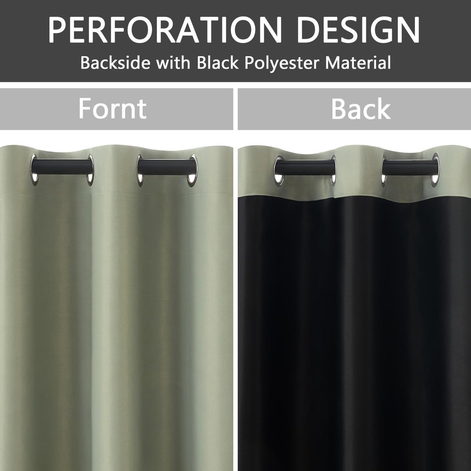 MRTREES Vorhang Salbeigrün 100% Vorhangverdunkelung Thermovorhang Wärmeisolierend Kälteschutzvorhang Gardinen Wohnzimmer 2er Set, Gardinenschals mit Ösen 225 cm Lang, 140 cm Breit