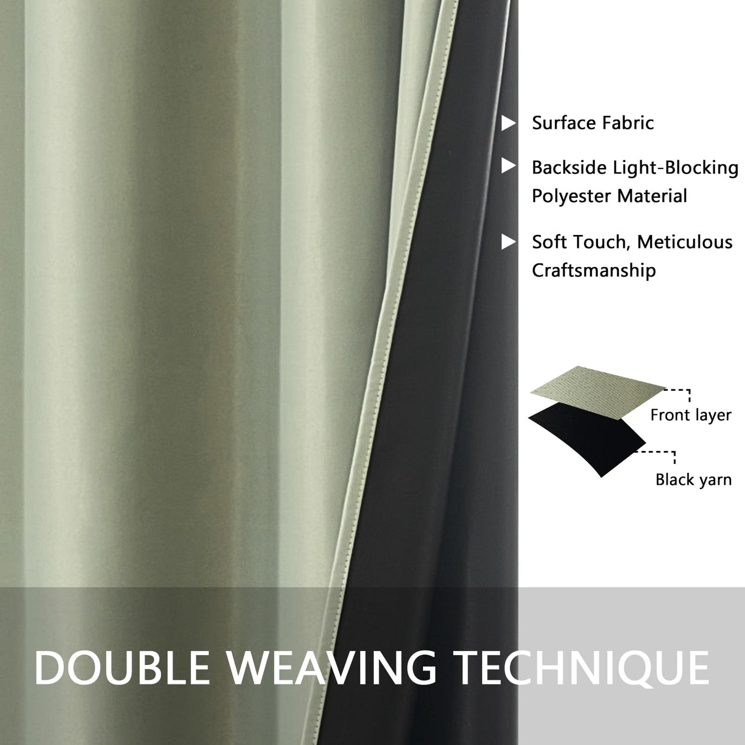 • ⭐ 2-Layer Weave Technology⭐ : Verdunkelungsvorhänge werden mit einer innovativen, zweilagigen Webtechnik hergestellt, die auf ein schwarzes Polyester-Futter genäht wird, anstatt mit einer chemischen Beschichtung, was umweltfreundlicher und sicherer ist. Die Nähte auf dem Futter sind fein verarbeitet