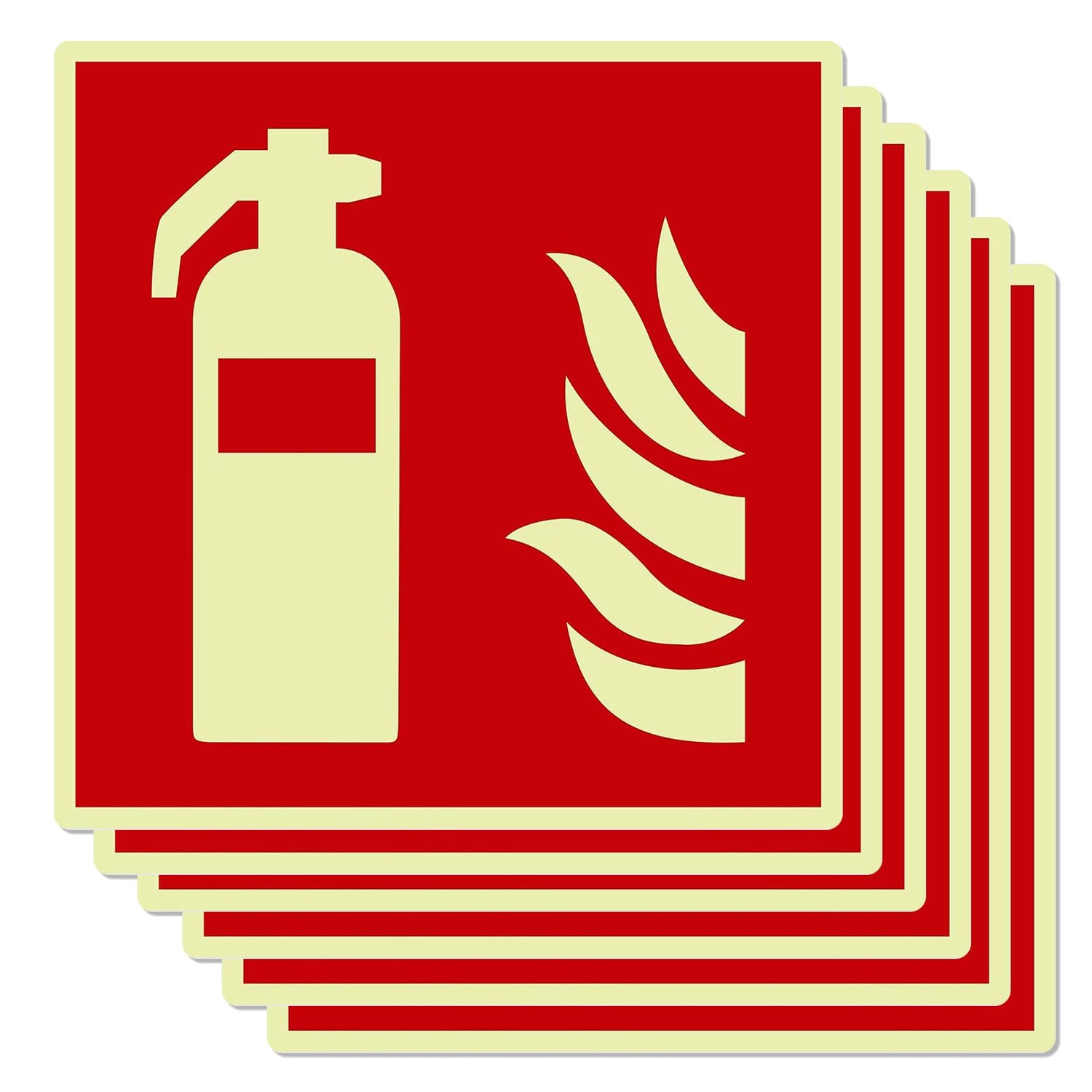 Mumjooyi 6 Stück Feuerlöscher Schild Feuerlöscher PVC Starker Kleber Hochwertiges Hinweisschild Feuerlöscher Nachleuchtend Selbstklebend 14,5 x 14,5CM (6 Stück Feuerlöscher Schild)