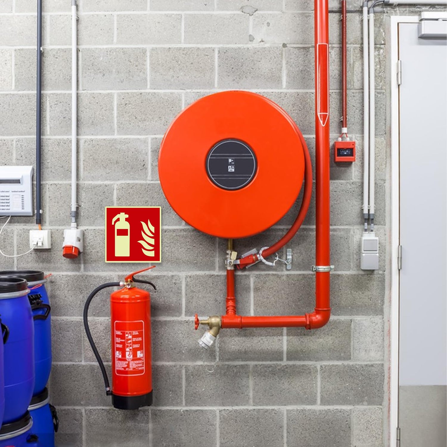 • Symbolschild Feuerlöscher, Größe: 145x145mm.