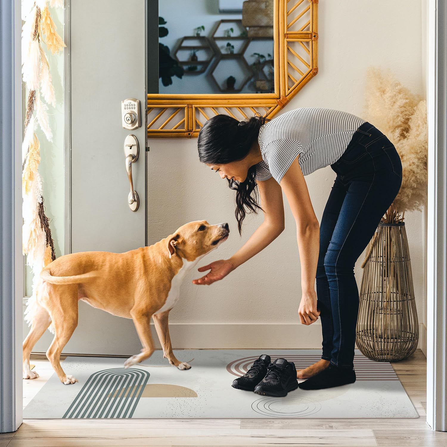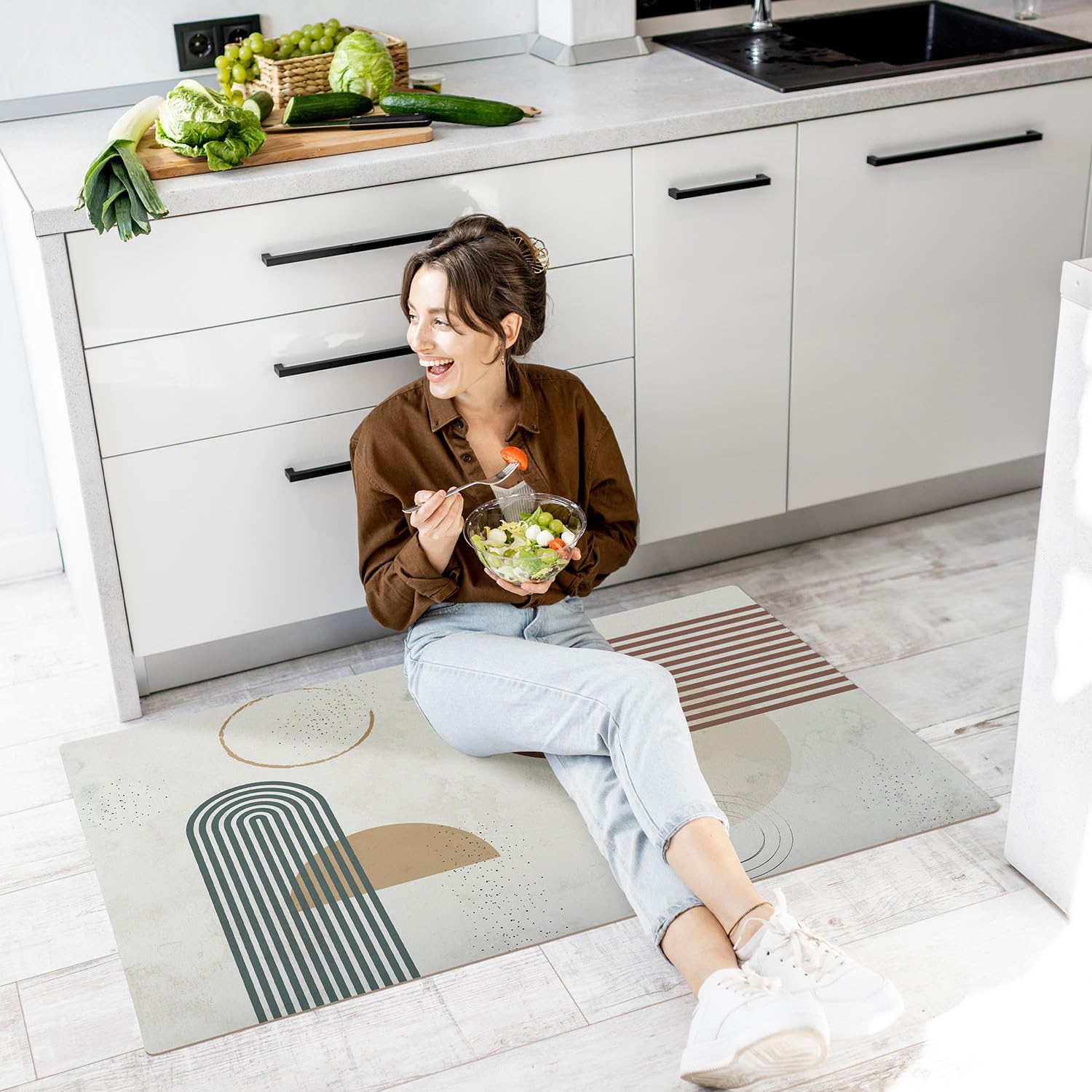 murando - Vinyl Teppich 90x60 cm - PVC Küchenteppich für Wohnzimmer Schlafzimmer Outdoor Läufer Küche Vinylteppich Dünn rutschfest Balkonteppich Design Abstrakt Beige Helle Farbe Boho n-A-1387-bi-a