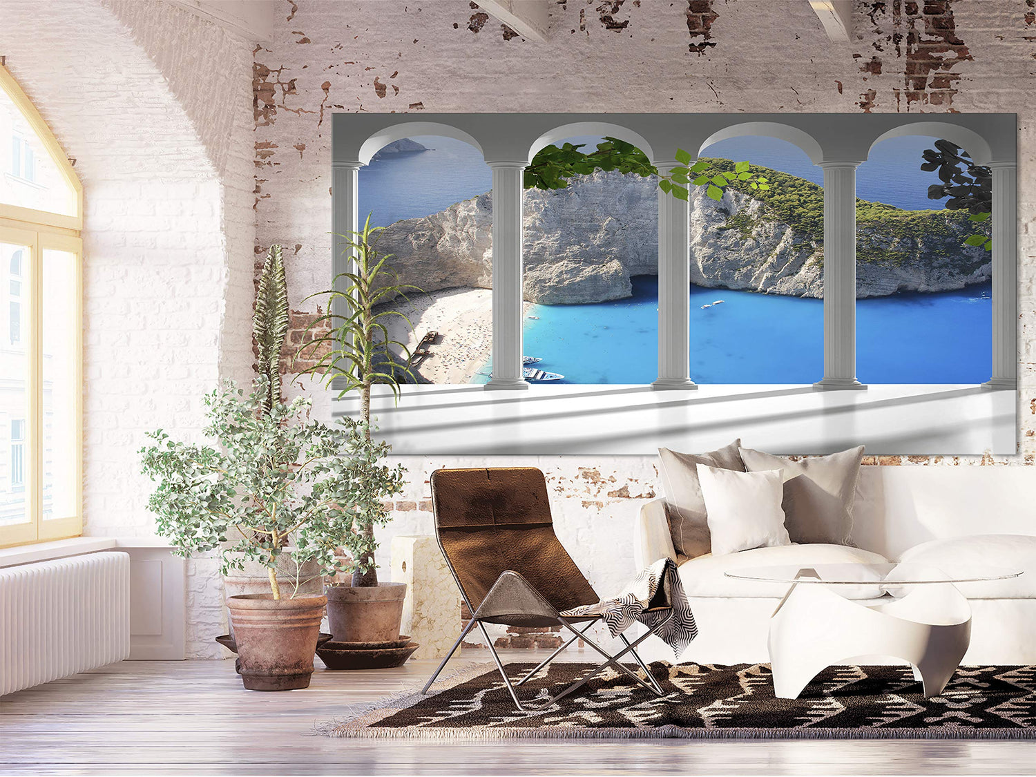 murando Wandbild Mega XXXL Fensterblick Einteiliger XXL-Format Kunstdruck zur Selbstmontage Leinwandbilder moderne Bilder DIY Wanddekoration Wohnung Deko Meer Strand Zakynthos