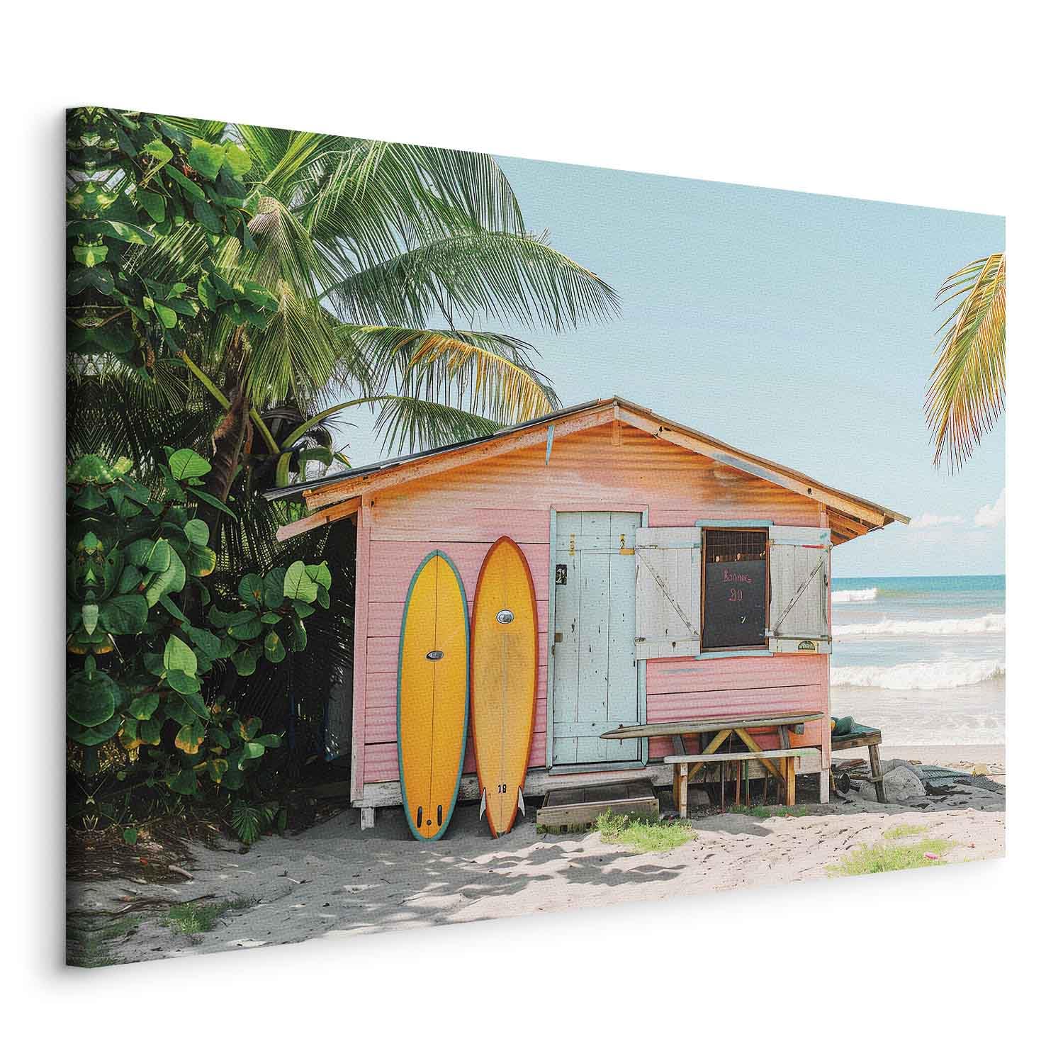 murando - Wandbilder Summer Vibes 60x40 cm 1 tlg Wand Deko Leinwand Bilder Groß Wanddeko Wohnzimmer Schlafzimmer Kunstdrucke Feiertage Sommerlandschaft Sommer Strandhütten Palmen c-H-10033-b-a