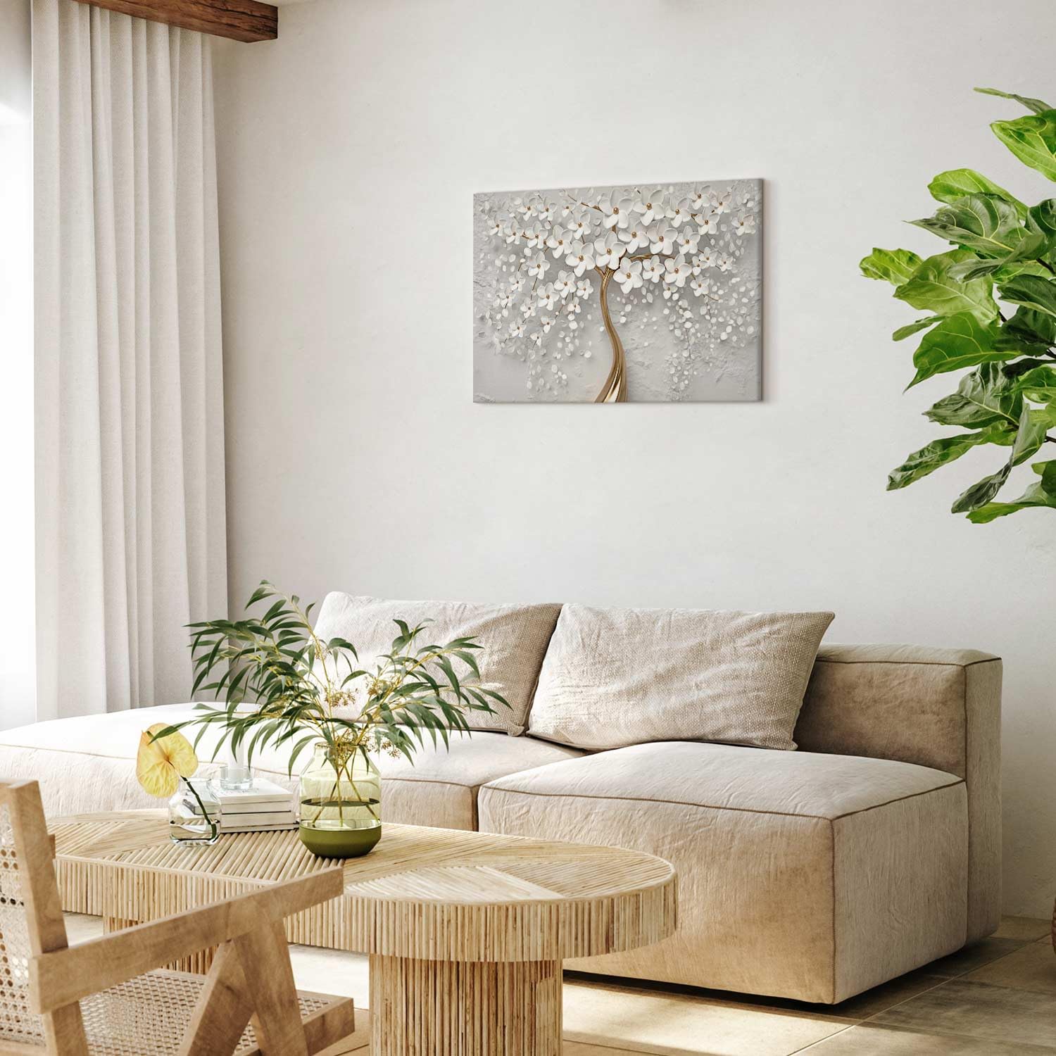 murando - Wandbilder XXL Abstrakte Baum 120x80 cm 1 tlg Leinwand Bilder Wand Deko Bilder Wohnzimmer Bild Schlafzimmer Leinwandbilder Wandbild Groß - Blumen Motiv Blütenbaum Bäume Weiß b-B-0475-b-a