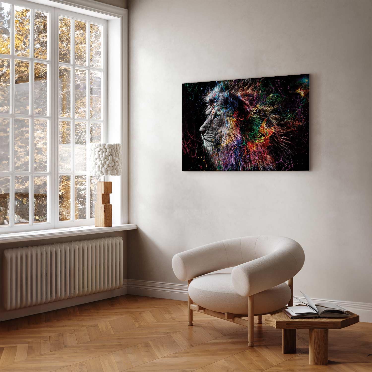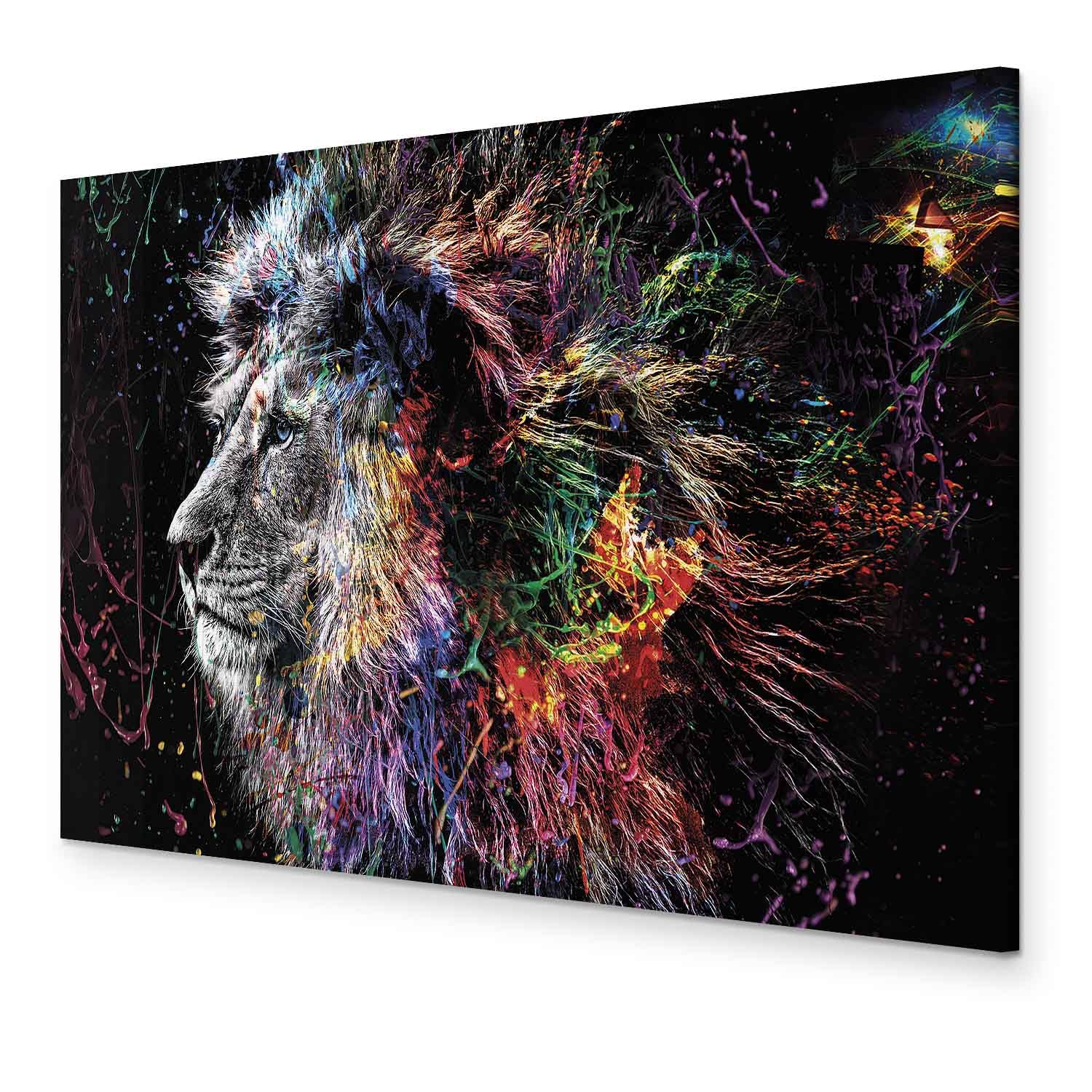 murando - Wandbilder XXL Tiere 120x80 cm 1 tlg - Wand Deko Leinwandbild Leinwand Bilder Bilder Wohnzimmer Bild Schlafzimmer Leinwandbilder Wandbild Groß - Löwe Abstrakt Schwarz und Bunt g-C-0269-b-a