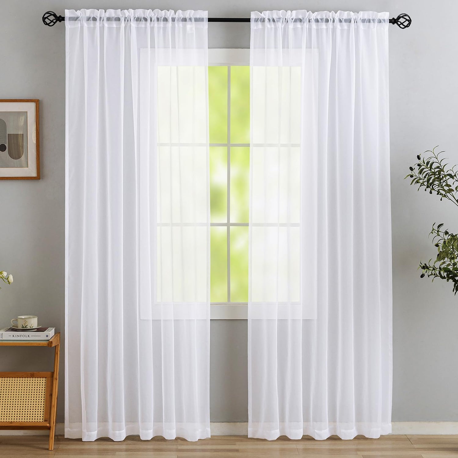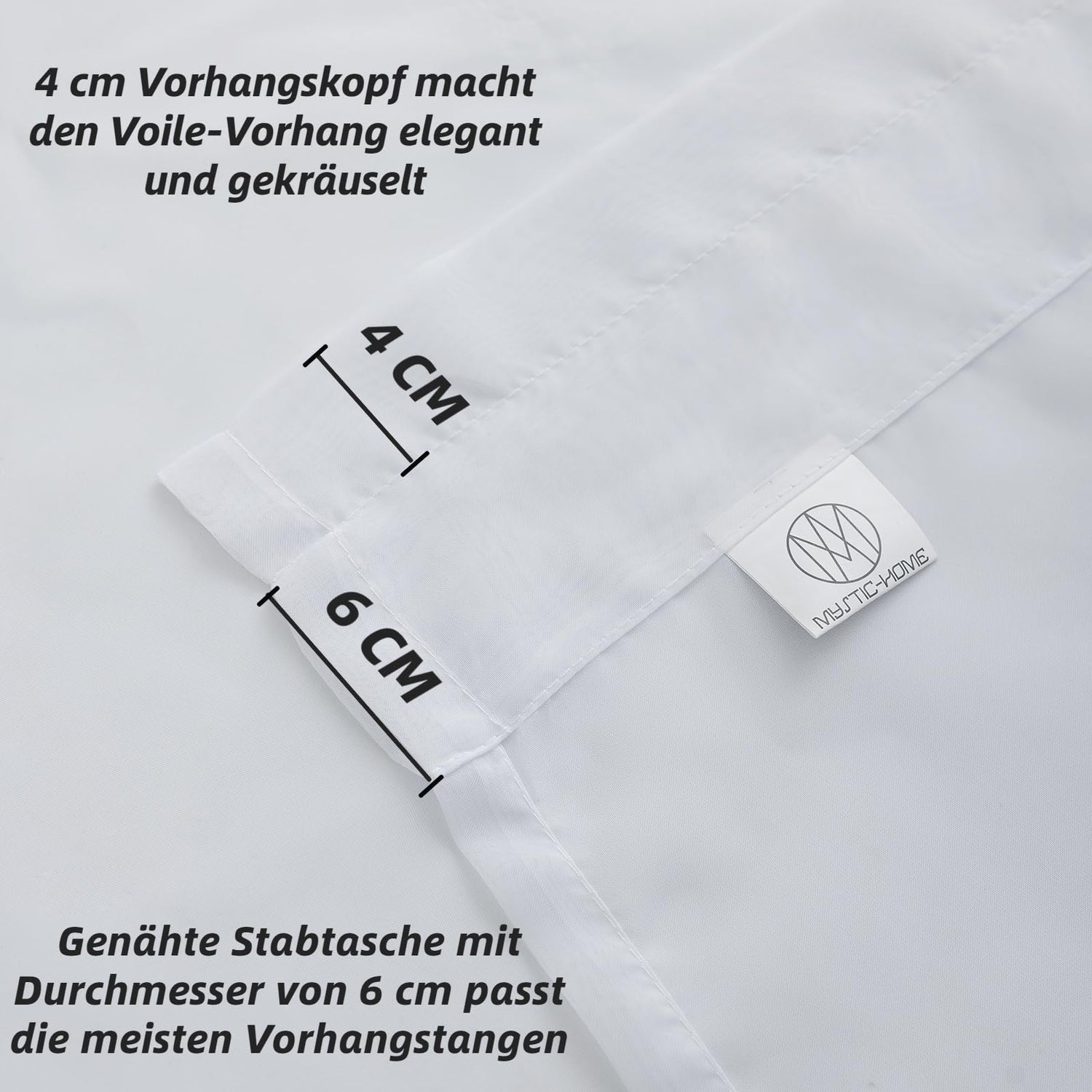 MYSTIC-HOME Gardinen Weiss Transparent - Voile Gardinen Wohnzimmer Modern - Luftige Soft und Sonnenlichtfilterung - Rod Pocket Vorhang Weiß Durchsichtig für Schlafzimmer, Weiß 2er Set H245 x B140 cm