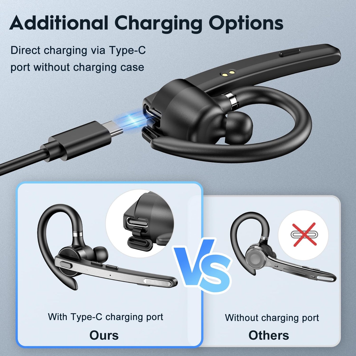 New bee Bluetooth Headset, V5.1 Wireless Freisprech Headset mit 72h Spielzeit und CVC 8.0 Dual ENC Geräuschunterdrückung Mikrofon, Bluetooth-Ohrhörer mit Ladecase für iPhone/Android/Laptop