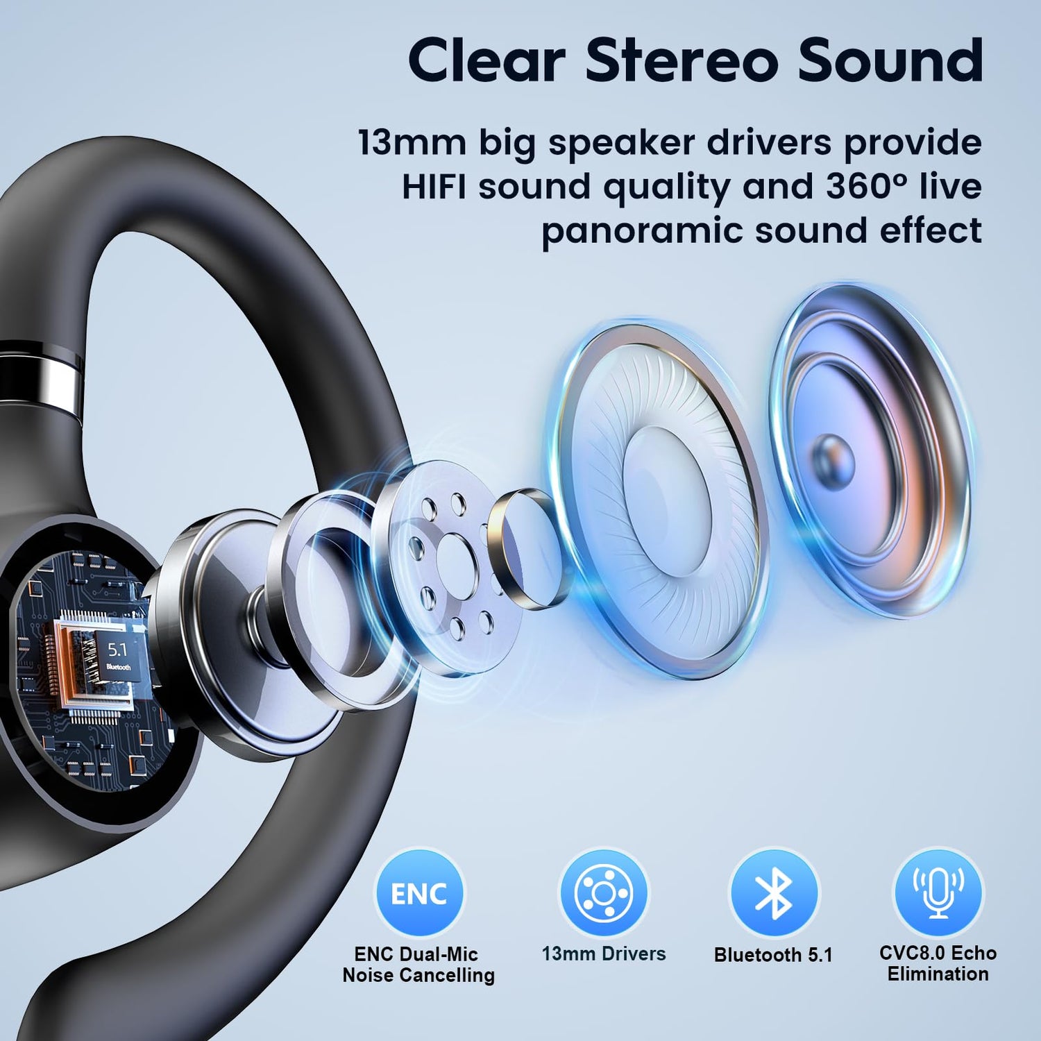 • Dual-Mikrofon-Geräuschunterdrückung: Das Hauptmikrofon des bluetooth headset ist verlängert, um die Stimme beim Telefonat präzise zu erfassen. Das sekundäre Mikrofon sammelt Umgebungsgeräusche und verbessert die Anrufqualität durch Rauschunterdrückung mithilfe des Hauptprozessors. Das Headset ist mit CVC 8.0 ausgestattet, das Echos effektiv beseitigt und die Gesprächsqualität klarer macht.