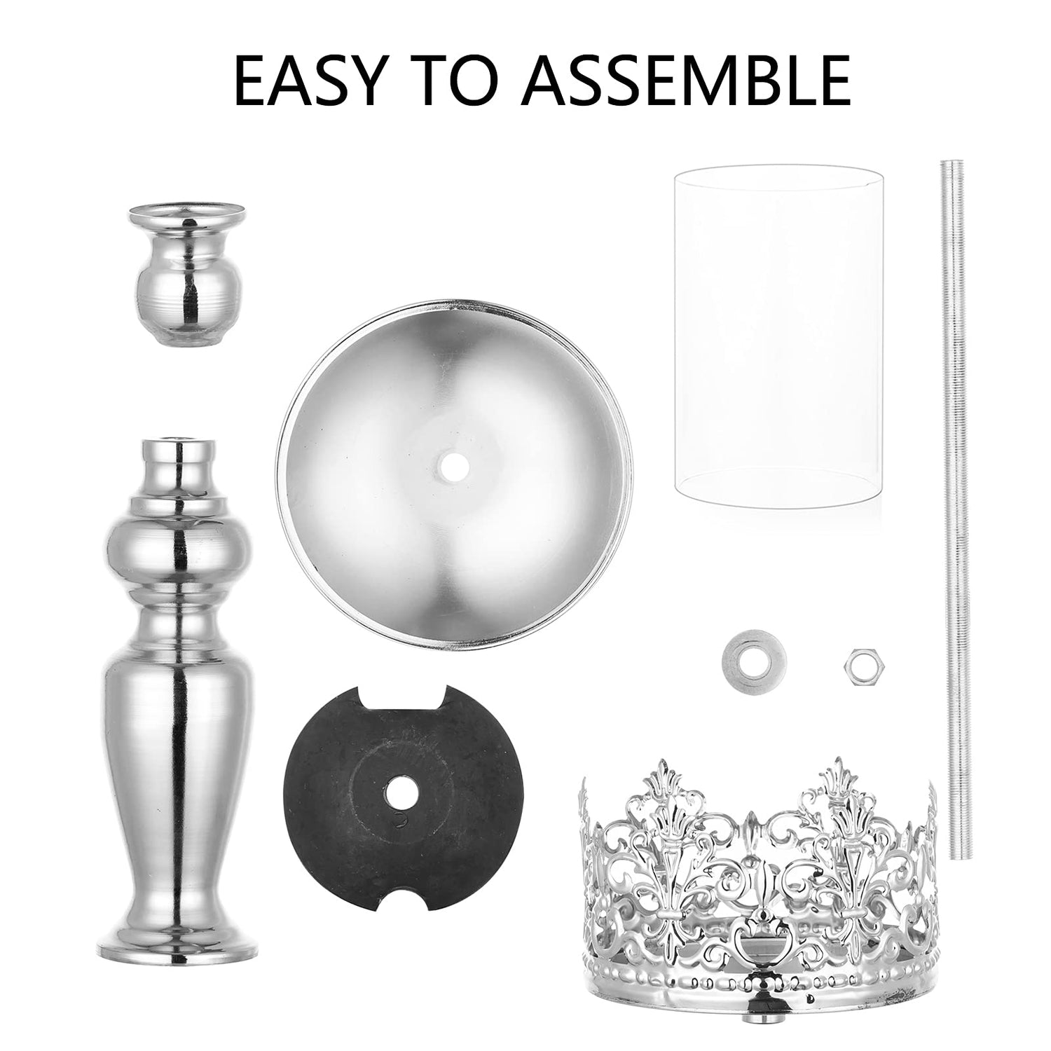 • ABMESSUNG: Die Höhe des silber Kerzenhalters beträgt 32cm/12.6", der Basisdurchmesser 13cm/5.12" und der obere Durchmesser 10cm/3.94". Die Höhe des Glases beträgt 15cm/5.91". Geeignet für Stumpenkerzen.