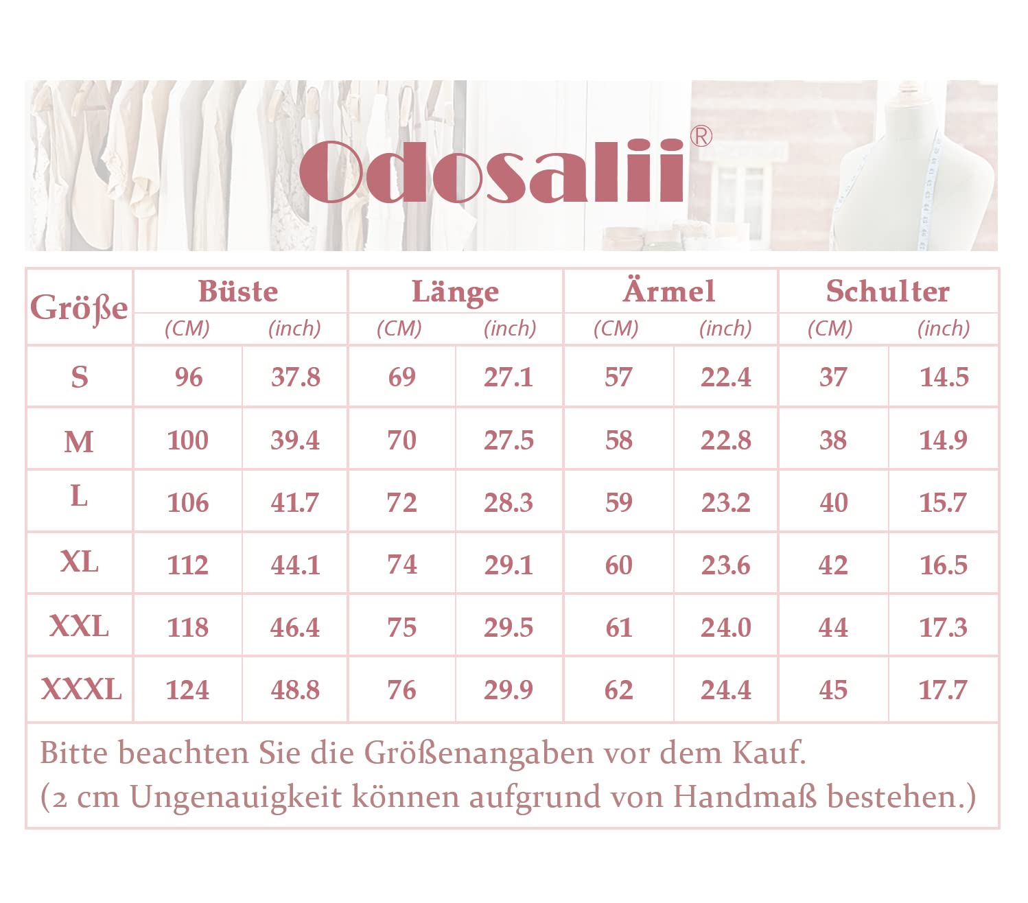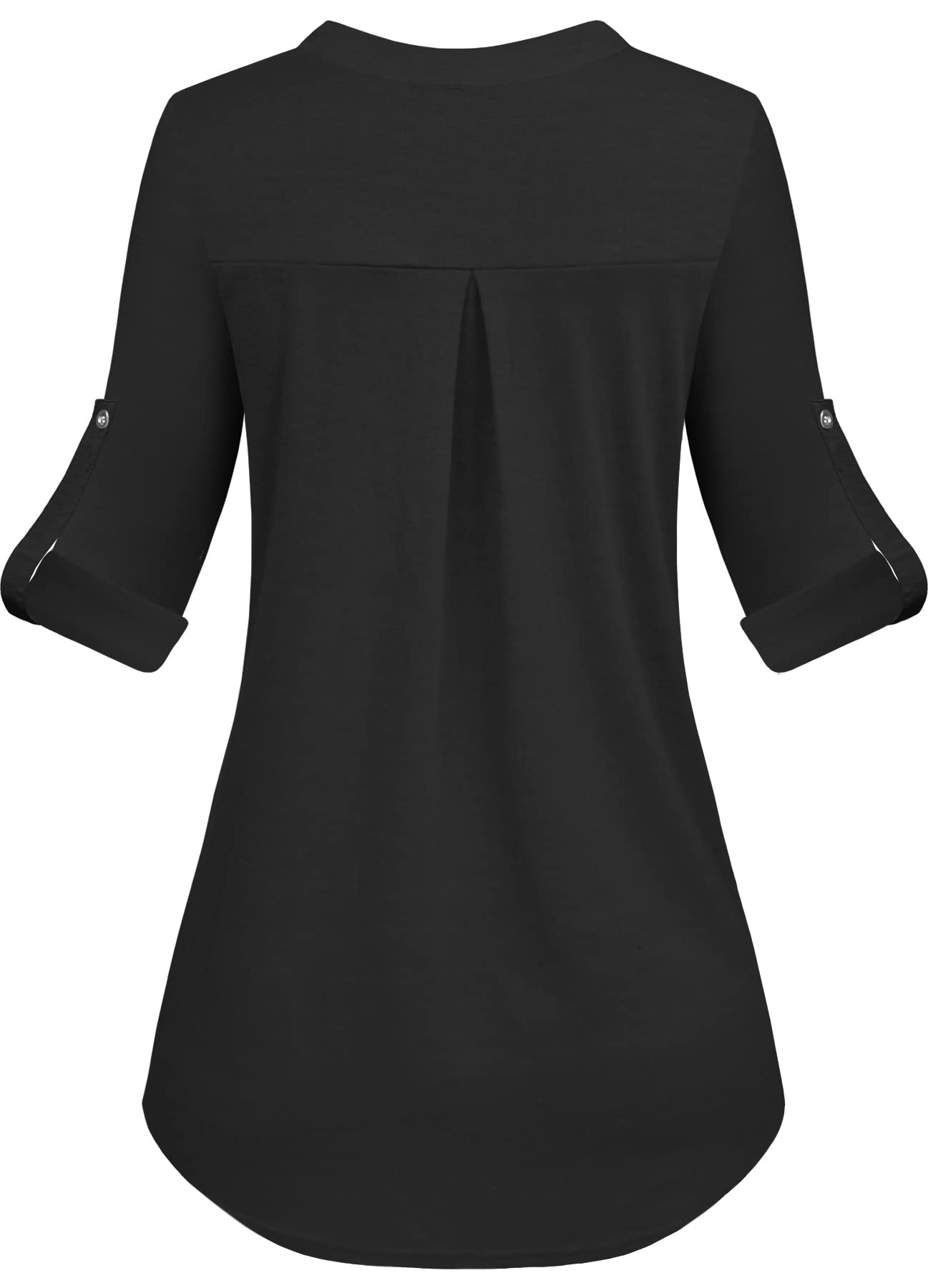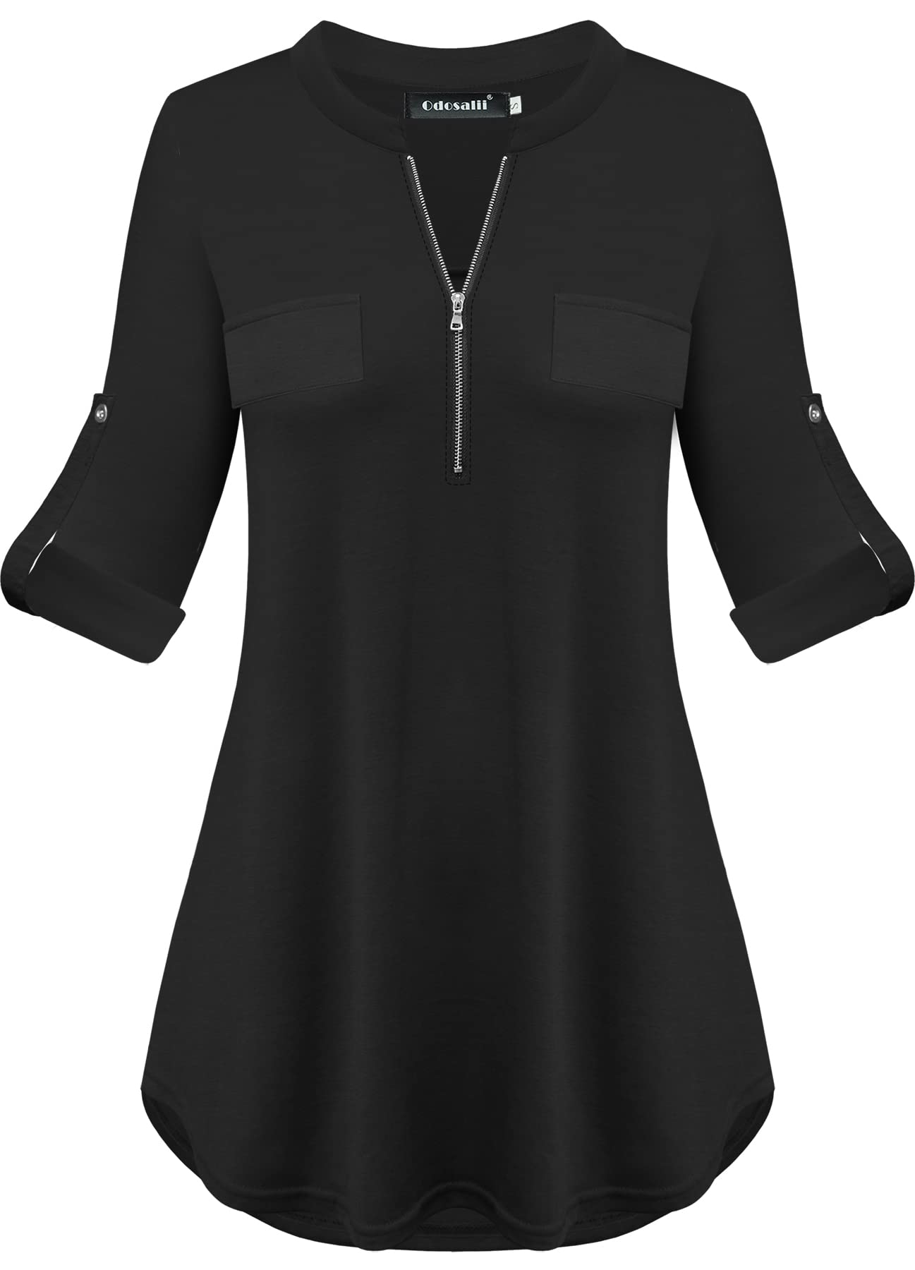 Odosalii Business Kleidung Damen Sommer 3/4 Ärmel V-Ausschnitt Büro Blusen Schwarz Oberteile