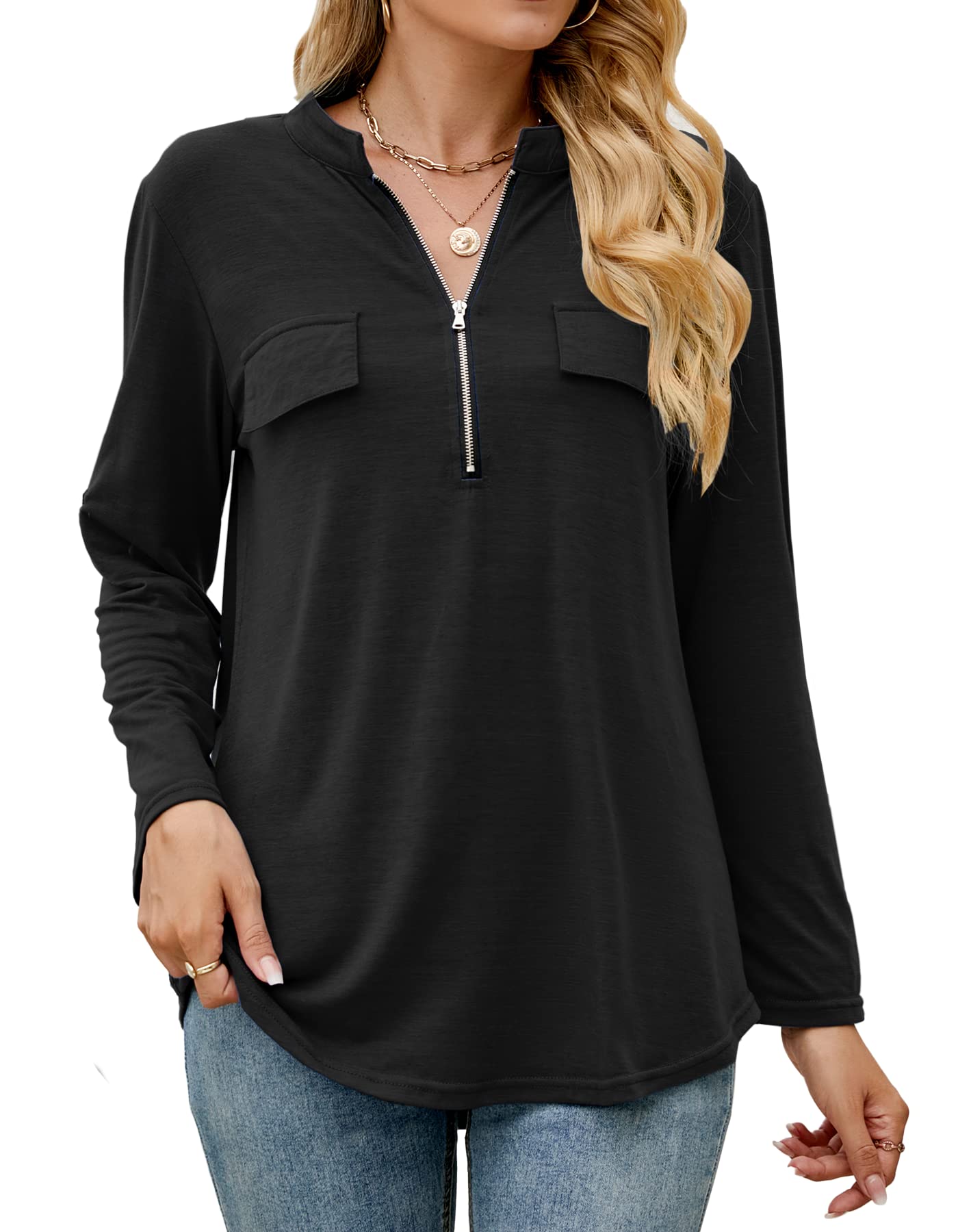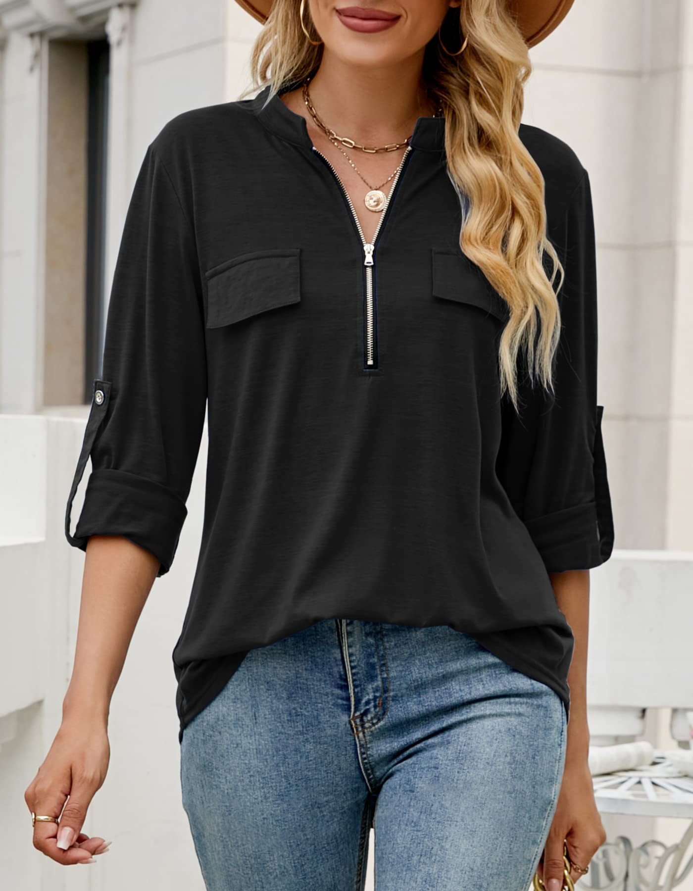 • Eigenschaften: V-Ausschnitt, Lange Ärmel, 3/4 Ärmel Hemd und Blusen, Reißverschluss. Klassischer A-line, einfache schwarz schlichte Damenhemden.