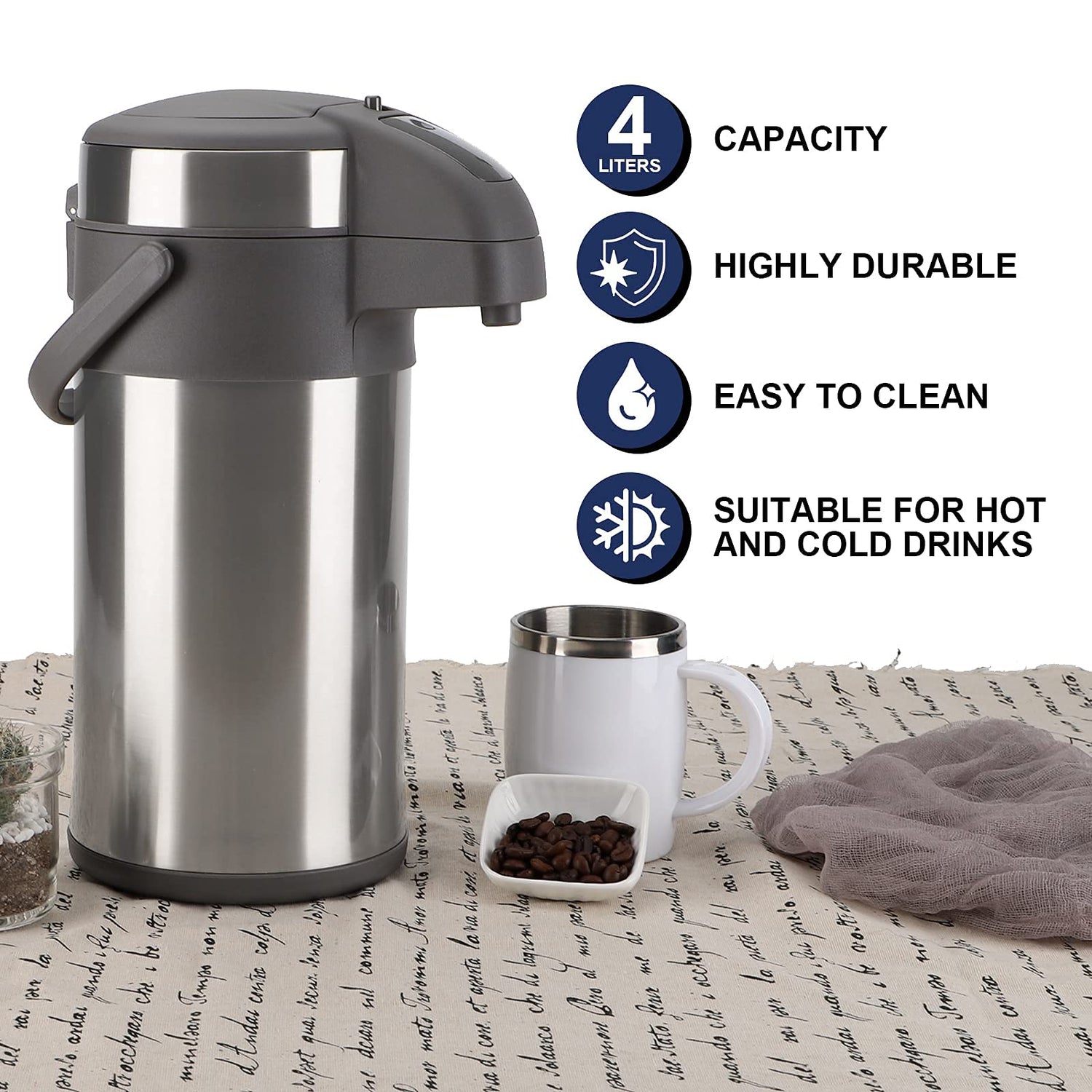 Praktischer Pumpmechanismus Der integrierte, verriegelbare Pumpverschluss ermöglicht ein einfaches und tropffreies Einschenken von Kaffee oder Tee. Ideal für den täglichen Einsatz in der Küche, im Büro oder bei Veranstaltungen.