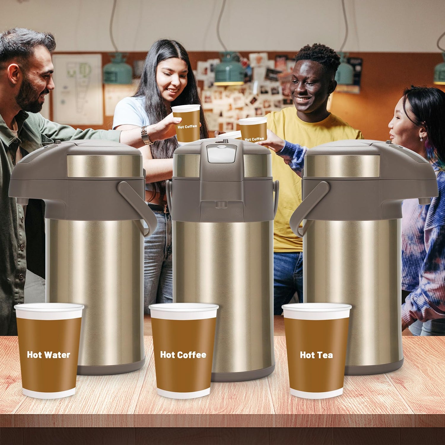Olerd Pumpkannen Thermoskannen Kaffeespender 4,0 Liter, Edelstahl Doppelwandige Pump Vakuum Isolierkanne mit Pumpmechanismus, Kaffeekaraffe, Kanne für 24 Tassen (Gold)