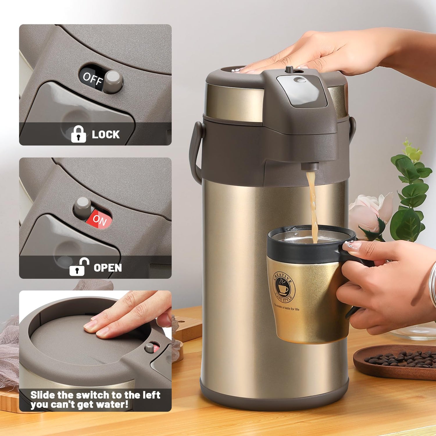 • PUMP-MECHANISMUS: Der Pumpkannen verfügt über einen verriegelbaren Pumpmechanismus und Kaffee oder Tee lassen sich unkompliziert einschenken!