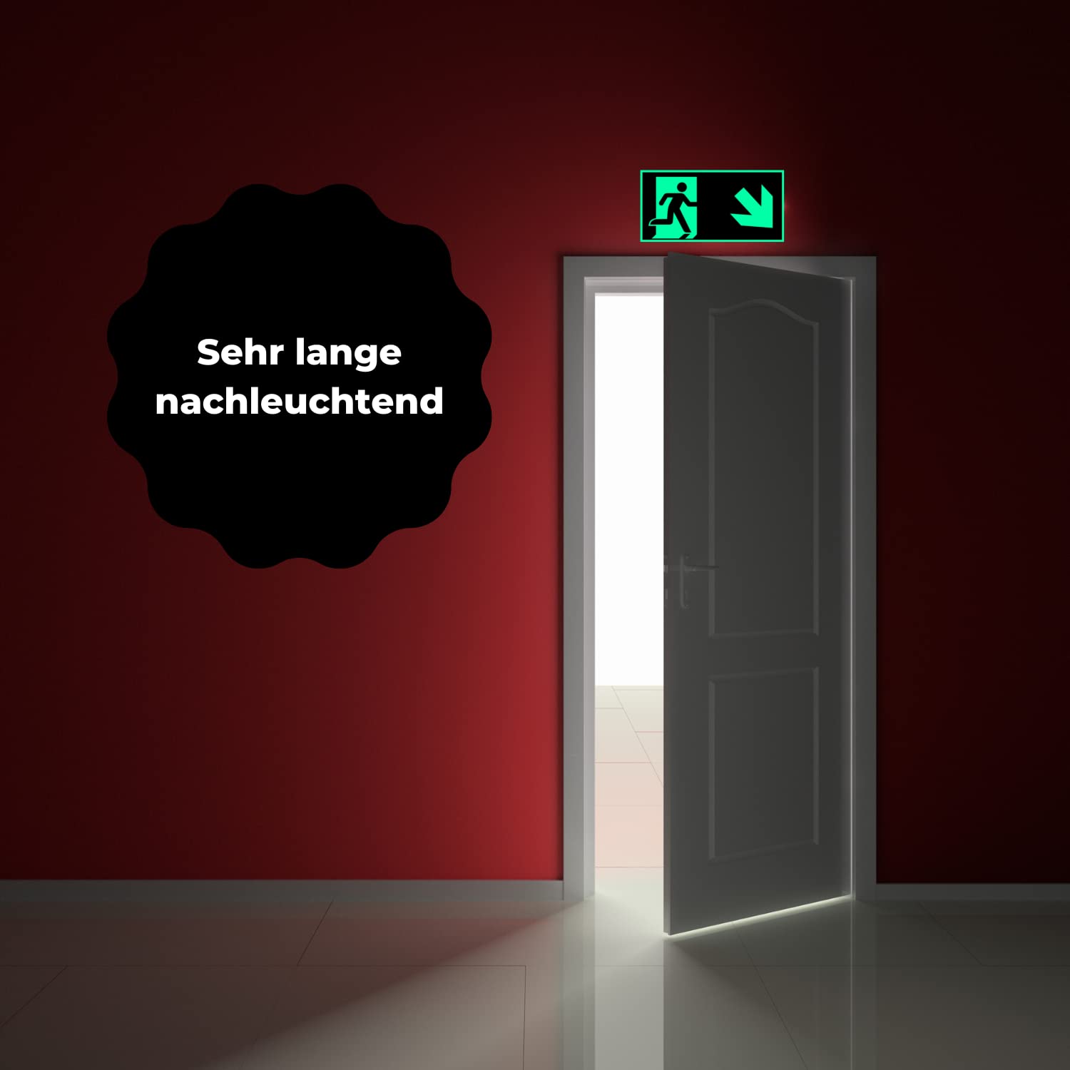 • ✔️NACHLEUCHTEND: Unser Rettungswegaufkleber ist sehr hell im dunkeln und lange nachleuchtend