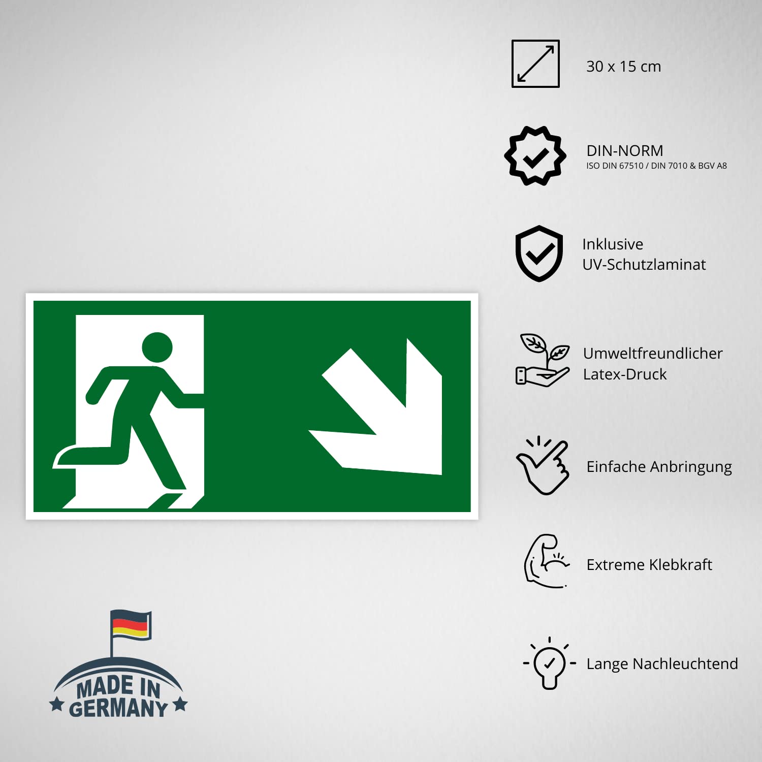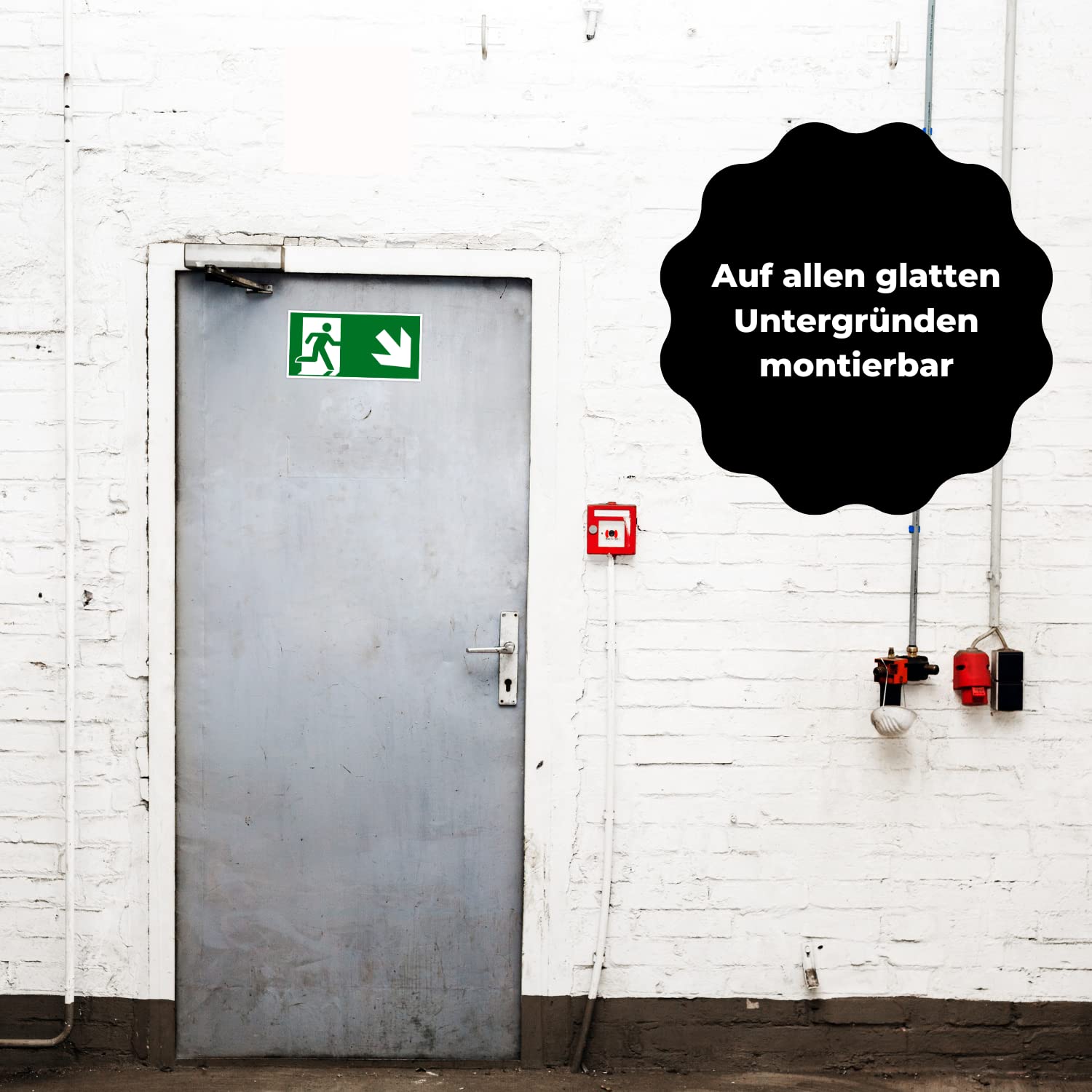 • ✔️QUALITÄT: Unser Fluchtwegaufkleber ist selbstklebend mit einem Industriekleber versehen, hat ein zusätzliche UV-Schutzlaminat und ist für Innen & Außen geeignet
