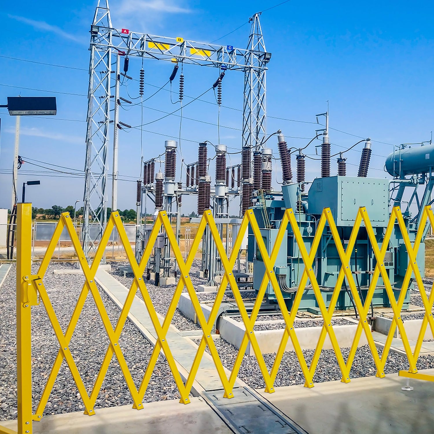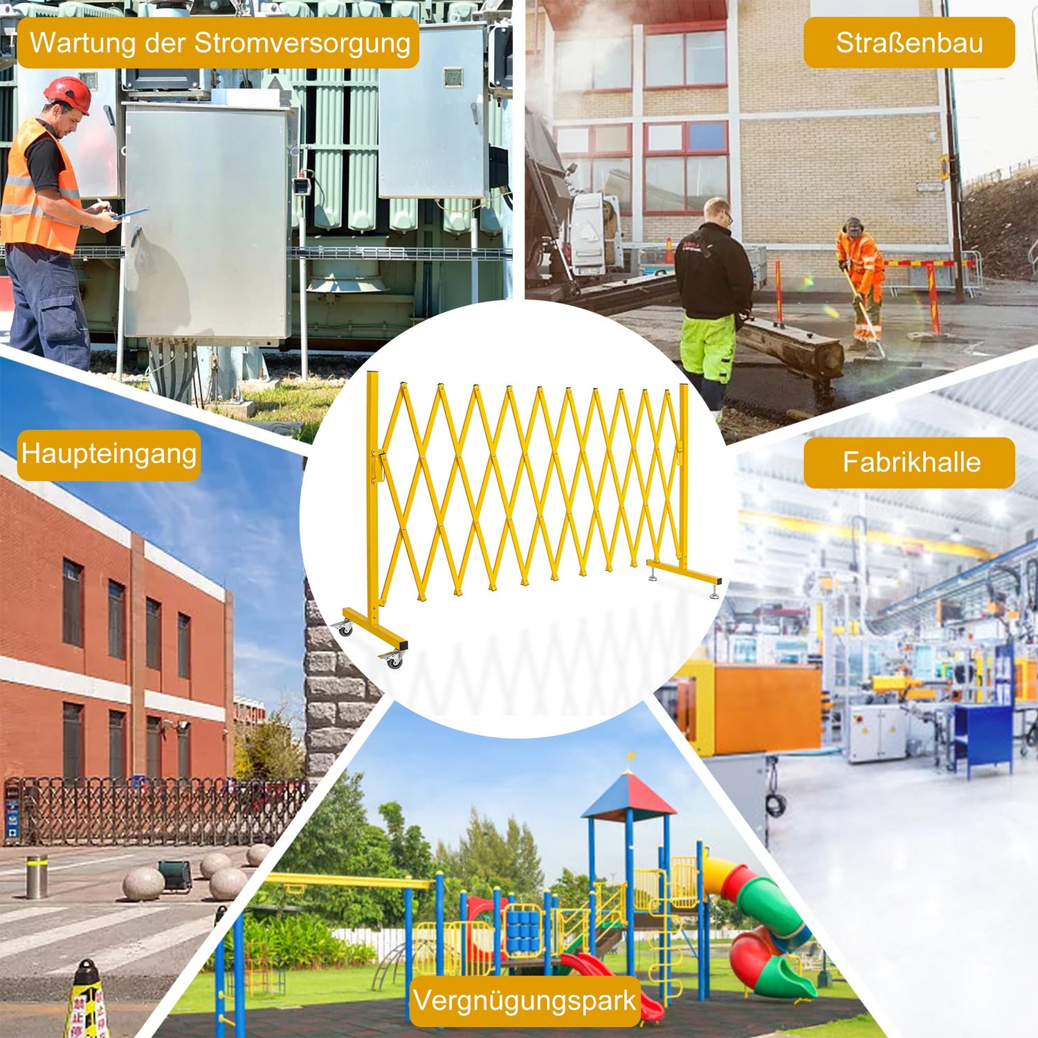 OUUTMEE Scherengitter ausziehbar, maximaler Breite 330cm x Höhe 120 cm, Teleskop-Tor, Baustelle/Bahnhof/Schule/Garage, Gitter-Akkordeon-Zaun, Zaun/Zaun, Zauntor (leicht, kompakt) Gelb