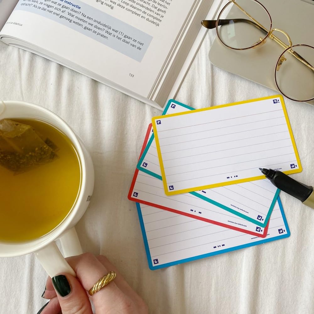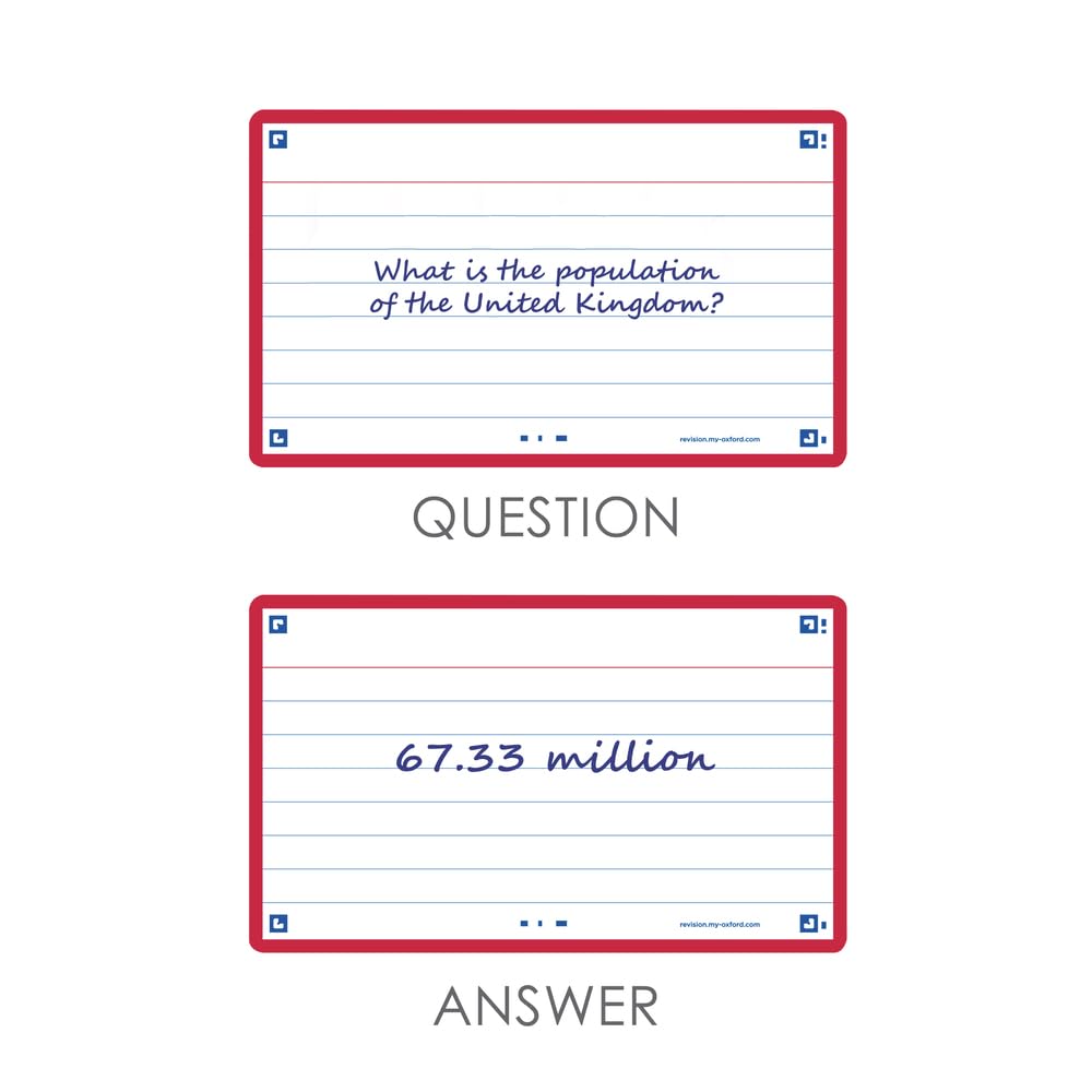 • Frage- und Antwortkarten: Schreiben Sie die Fragen auf die Vorderseite, die Antworten auf die Rückseite und testen Sie Ihr Wissen, indem Sie sich in kurzer Zeit mehrmals selbst abfragen