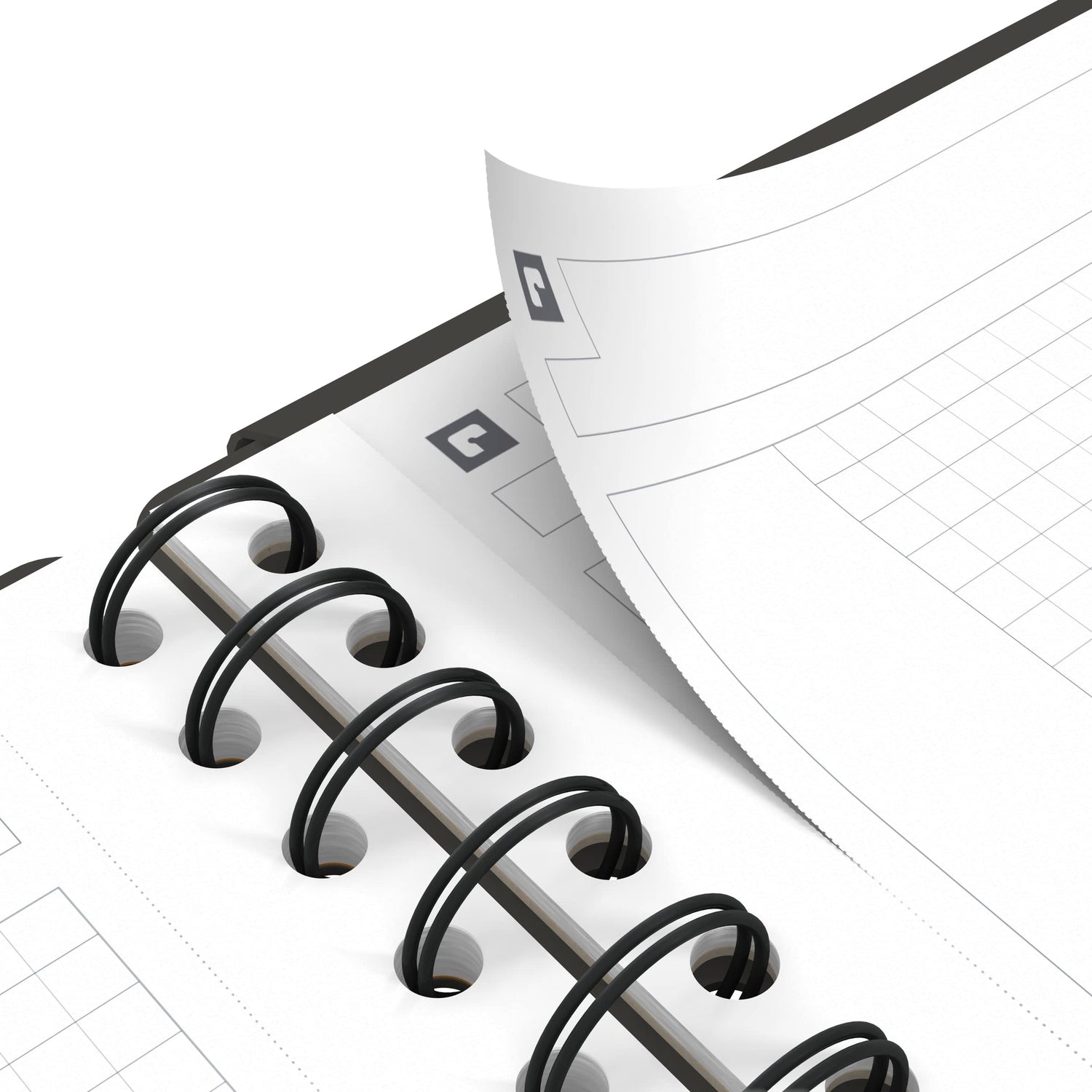 • Kariert mit Rand Kopfzeile und To-Do Spalte zum optimalen Strukturieren der Notizen, dank der Eckmarkierungen mit der kostenlosen Scribzee App kompatibel