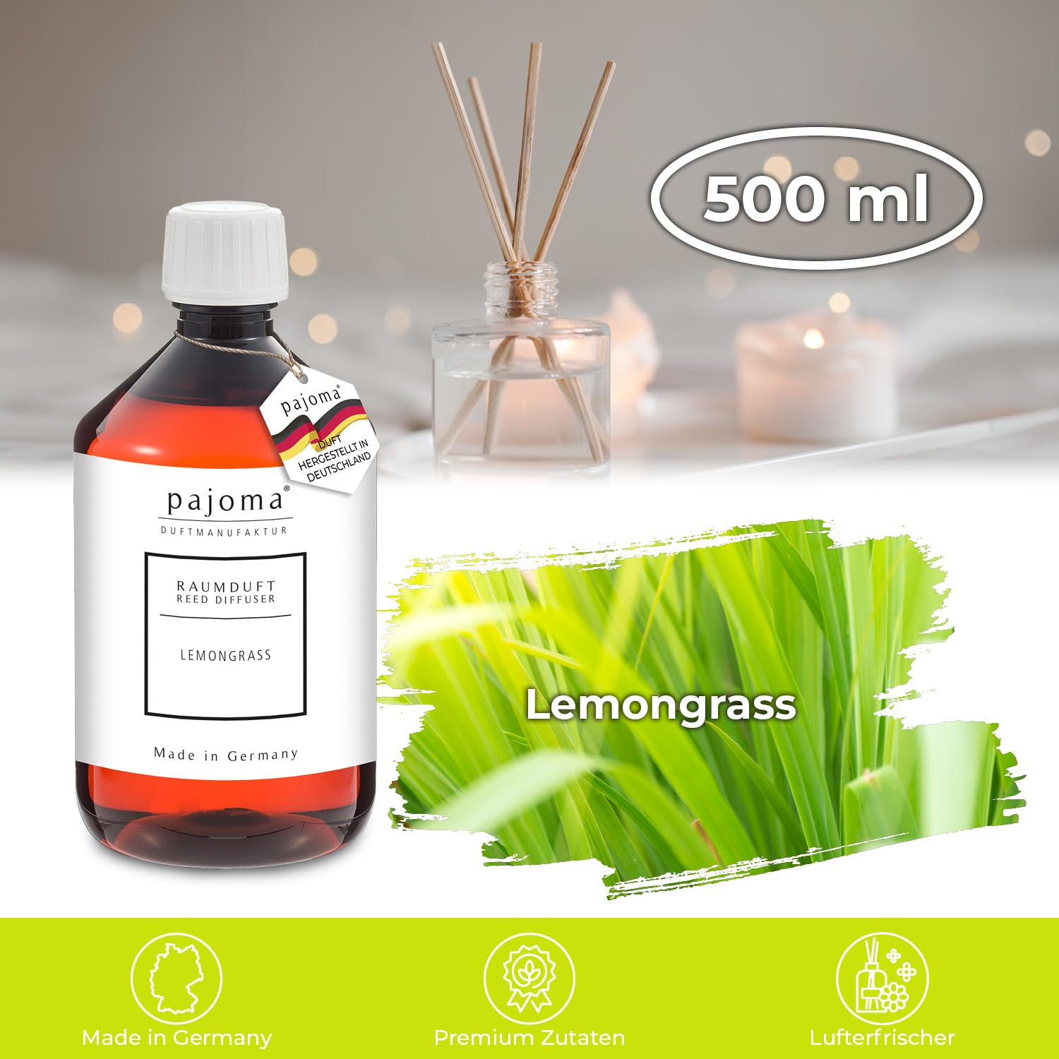 pajoma 44813 Raumduft Nachfüllflasche Lemongras, 1er Pack (1 x 500 ml)