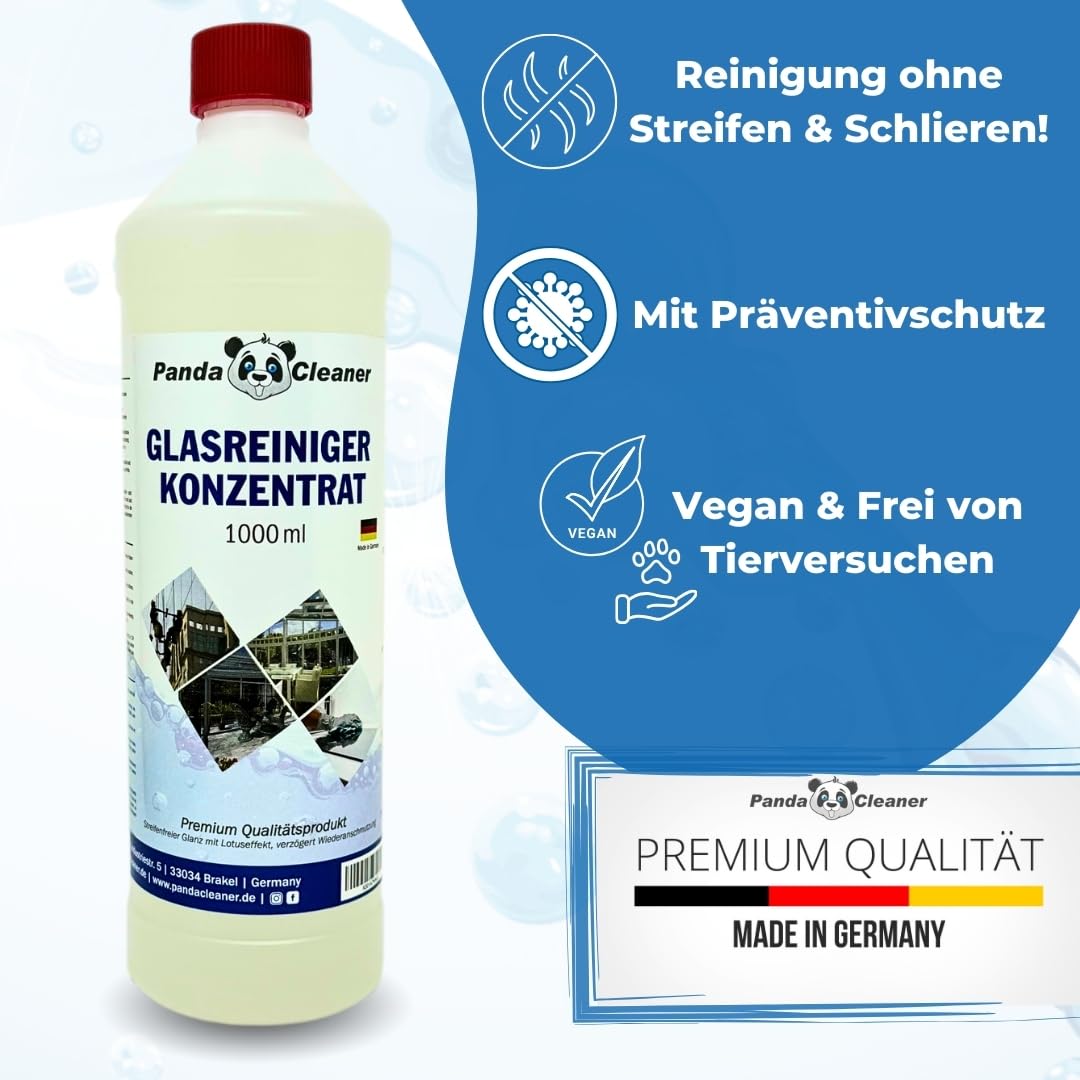 PandaCleaner Glasreiniger Konzentrat - 1000ml Glasreiniger Fenster - Fensterreiniger Konzentrat für streifenfreie Reinigung - Für alle Fenstersauger (1000ml)