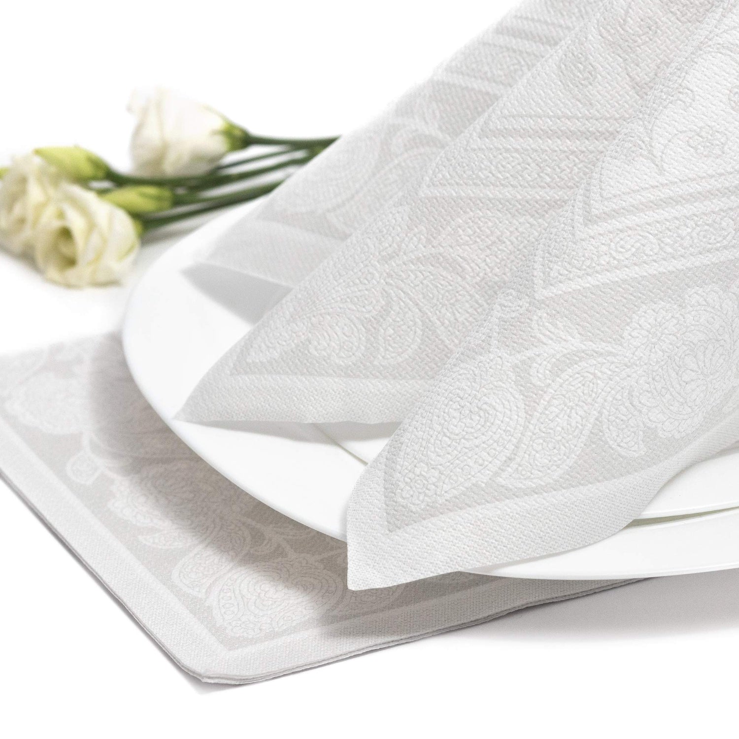 Papstar 11682 50-Servietten "Royal Collection" 1/4-Falz 40 x 40 cm "Ornaments", weiß