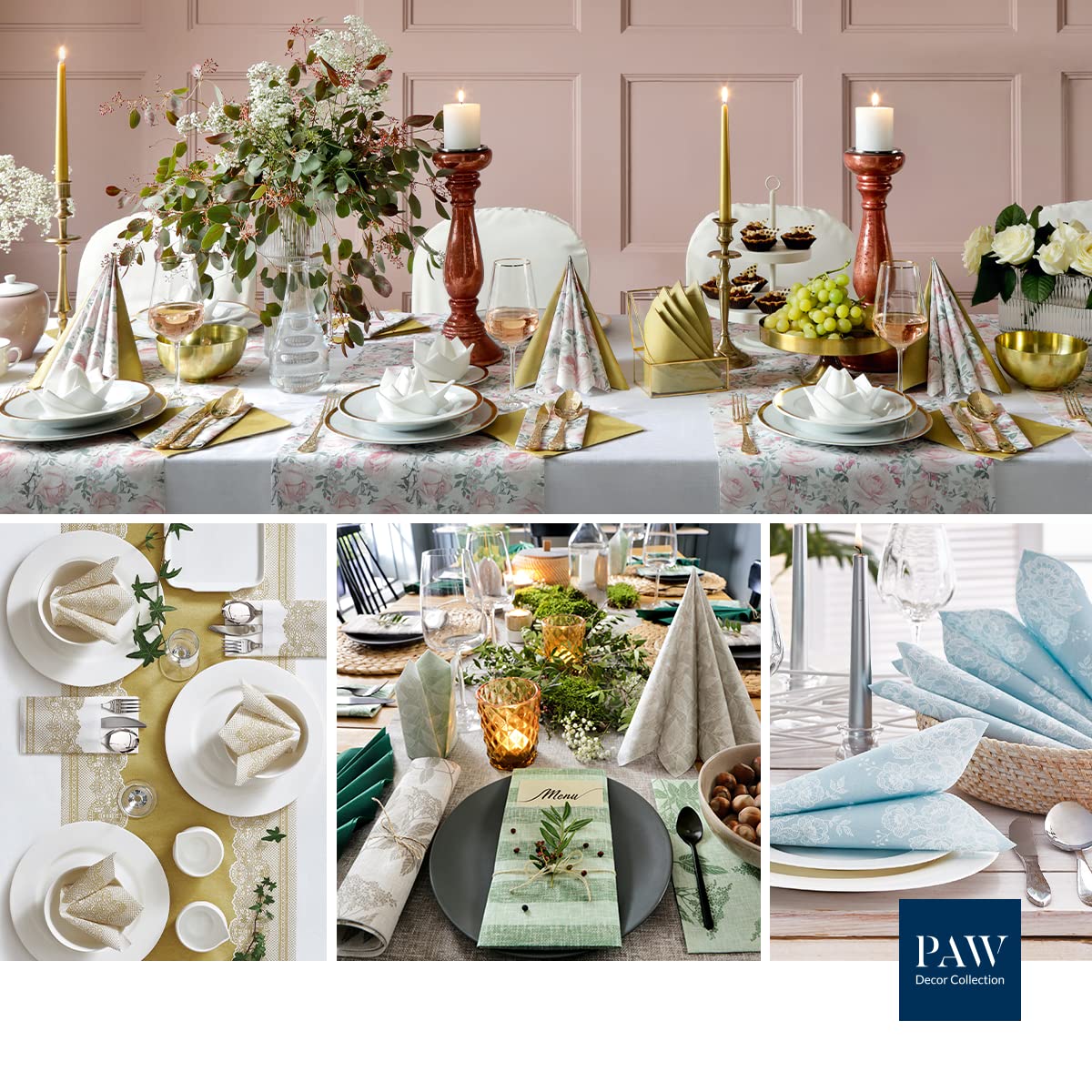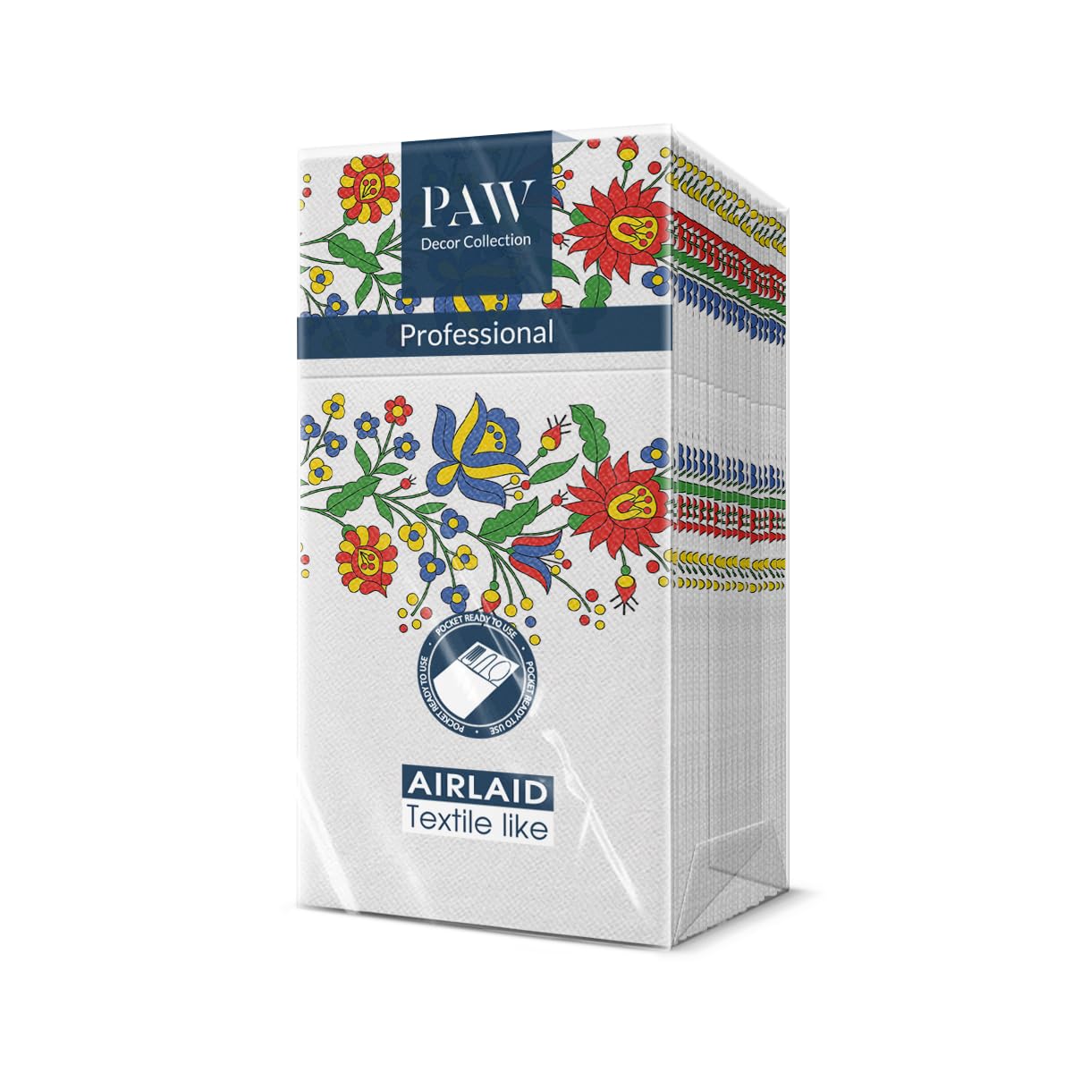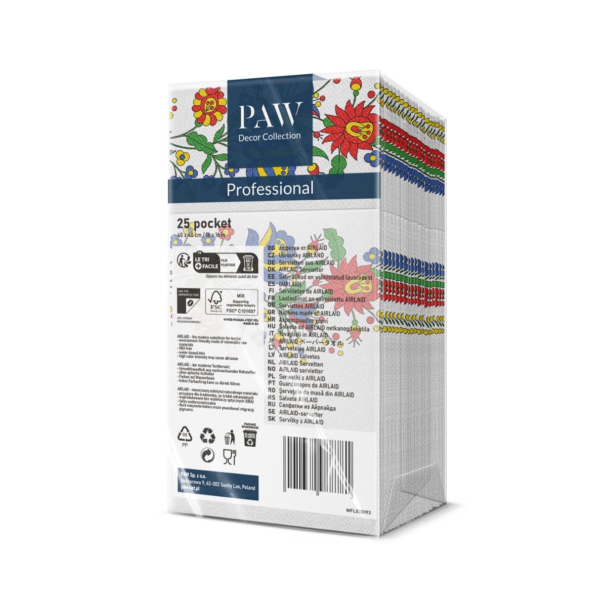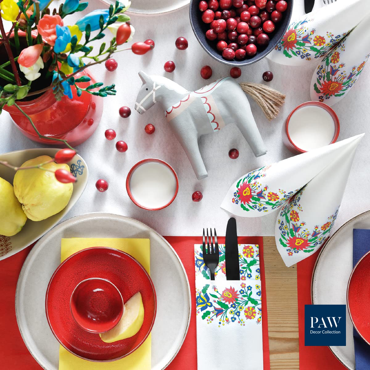 PAW - Servietten aus Airlaid - Stoffähnlich (1/8 pocket) I 25 Stück I Ideal für Hochzeit, Taufe, Kommunion, Geburtstag I Stoffservietten - Blumen, Volkstümlich I Farbe: Folk Flowers