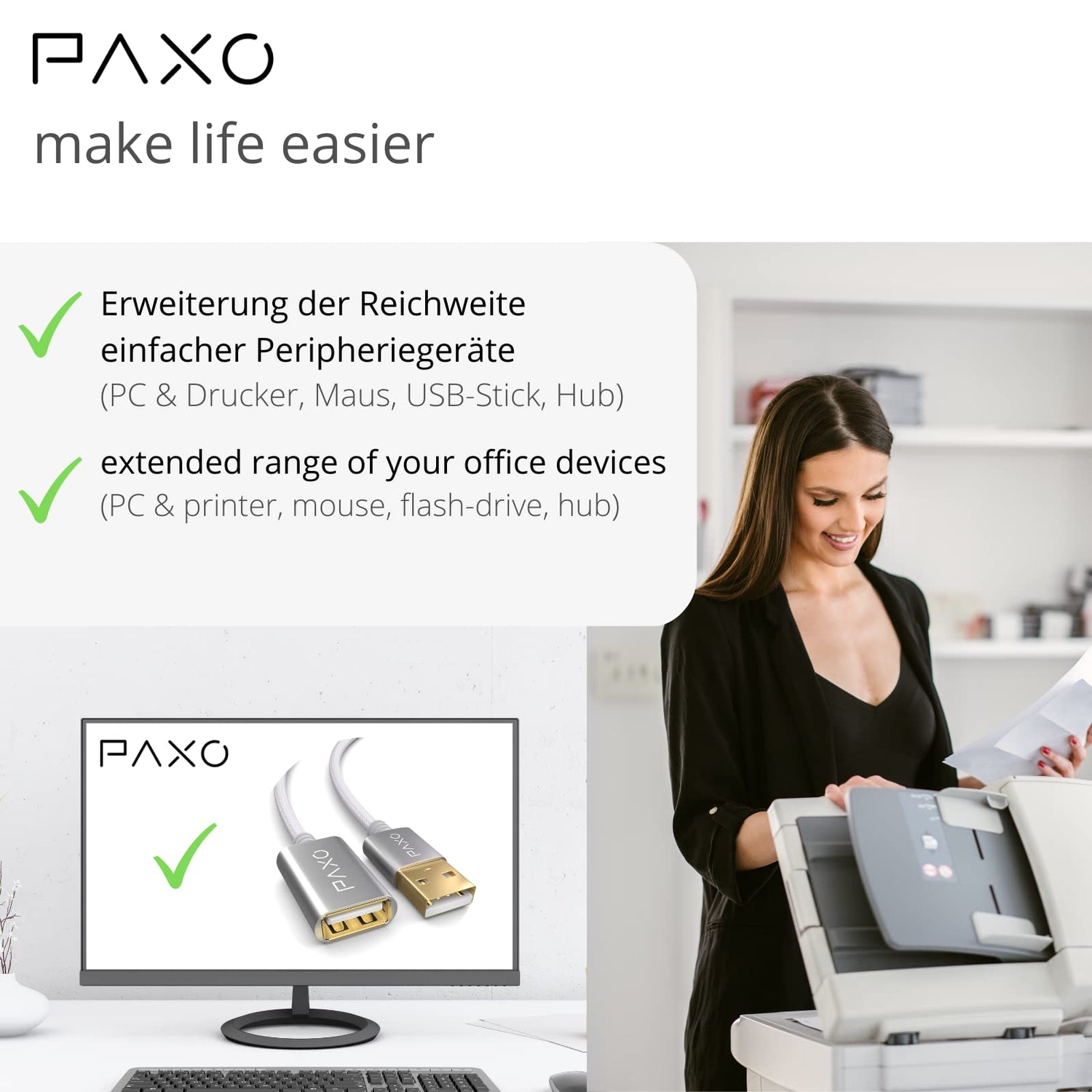 Das elegante robuste Verlängerungskabel von PAXO ist ideal geeignet für Kameras, Tablets, Smartphones, Drucker, W-LAN Sticks und diverse andere Geräte.