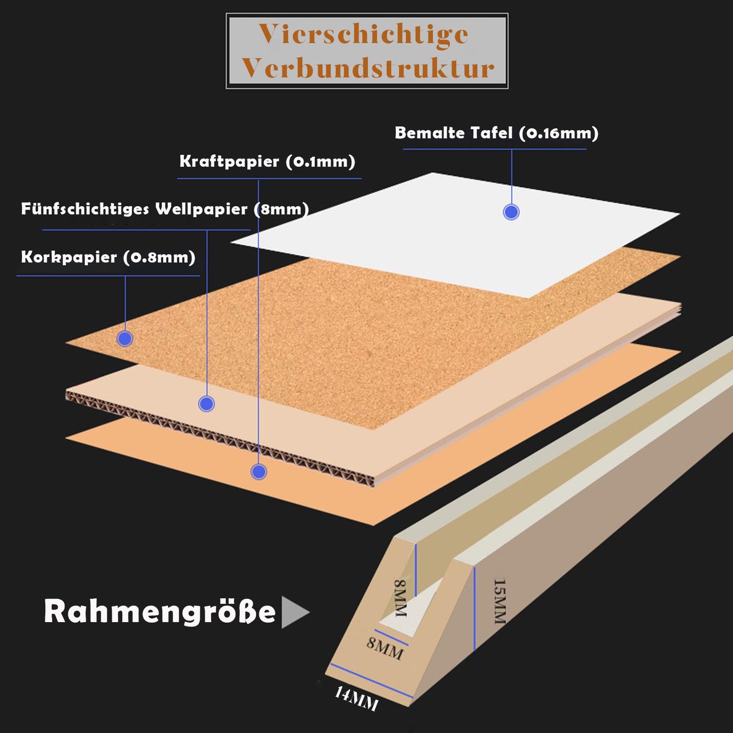 • 【NATÜRLICH UND KLASSISCH】 Das Paneel hat einen robusten Massivholzrahmen und ist nicht leicht zu beschädigen. Im Inneren befindet sich eine vierlagige Verbundstruktur. Auf der Oberfläche finden Sie eine Kombination aus magnetischem Whiteboard und Pinnwand. Die magnetische Pinnwand hat eine glatte Oberfläche, auf der man leicht schreiben und abwischen kann, um die kleinen Momente des Lebens festzuhalten. Sie ist ein Game-Changer für Ihren Alltag und Ihre Arbeit.