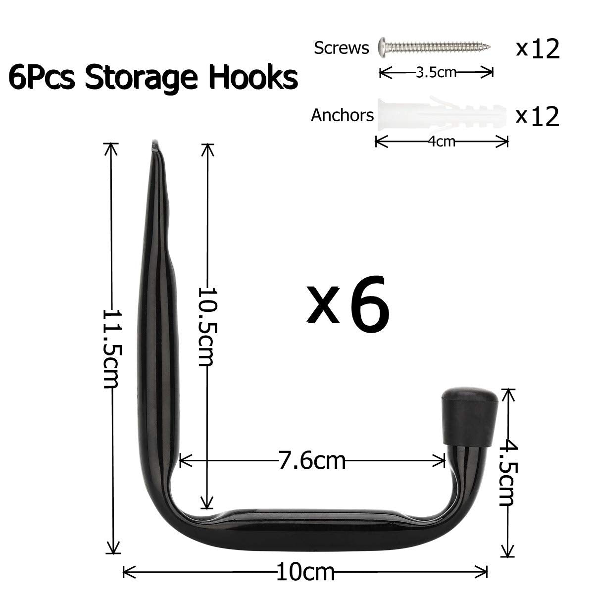 • PACKANG: 6er Pack 10cm Universalhaken für Garagen, 12 Stück 3,5cm Schrauben und 12 Stück 4cm Plastikanker.