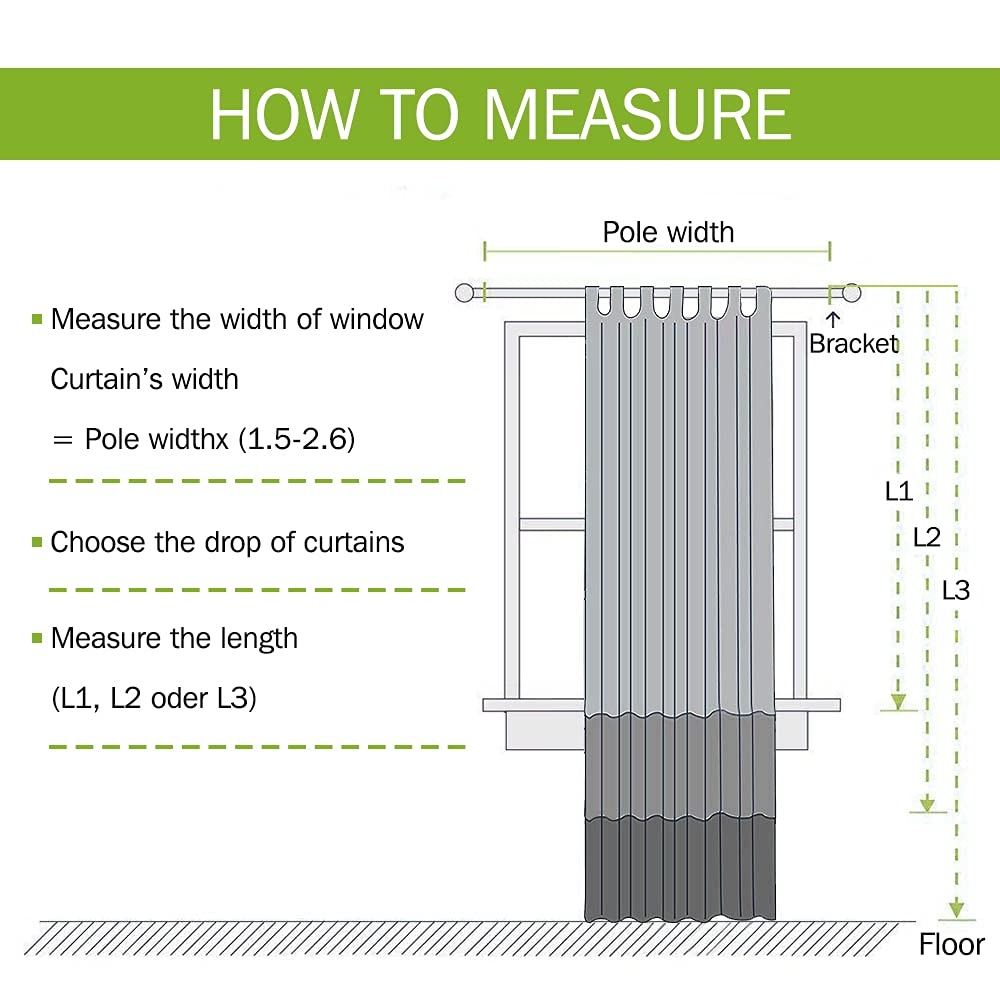 • Das Paket: Verkauft als zwei Stücke. Höhe 220 cm x Breite 140 cm für pro Stück. (Die Höhe wird von dem Oberteil der Schlaufen gemessen.) Empfehlen Sie die Vorhangsbreite, die das 1,5 bis 2,6-fache der Breite von Vorhangstange ist, zu bestellen.