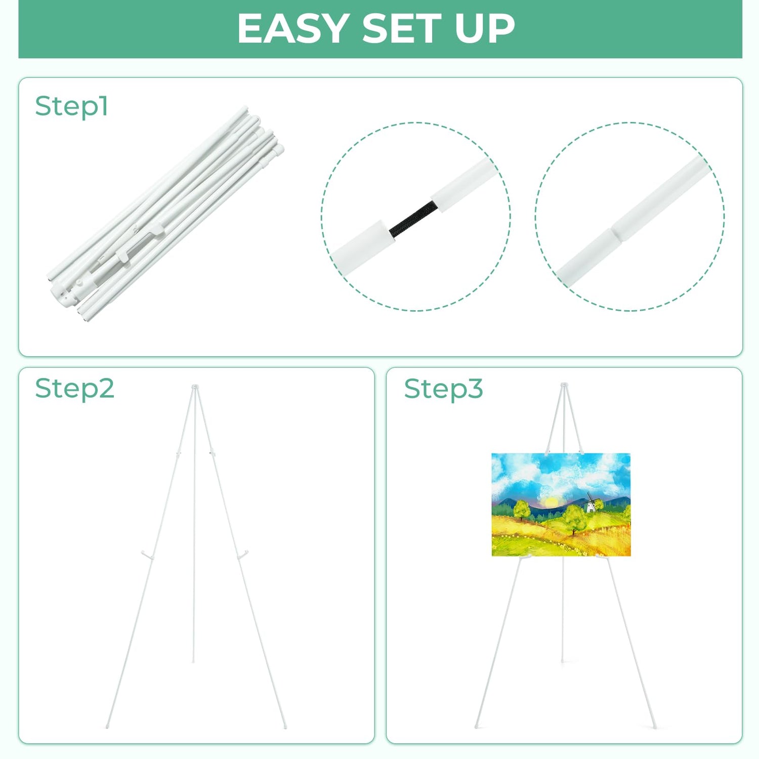 • [Einfach zu installieren] Die Ohuhu-Staffelei ist mit einem elastischen Seil und einem faltbaren Rohr ausgestattet. Es sind keine zusätzlichen Werkzeuge oder Zubehörteile erforderlich, der Auf- und Abbau erfolgt einfach und schnell in Sekundenschnelle.
