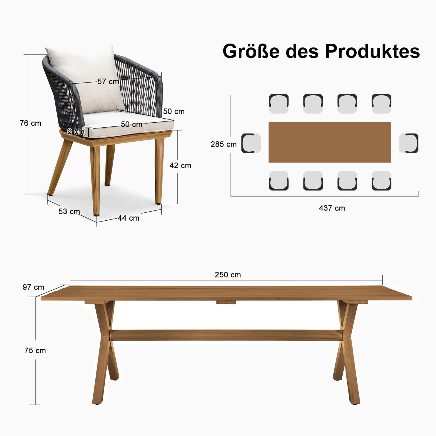 • 【Gartenmöbel Set】 Dieses Esszimmer-Set für den Außenbereich umfasst 10 Esszimmerstühle und 1 rechteckigen Esstisch.