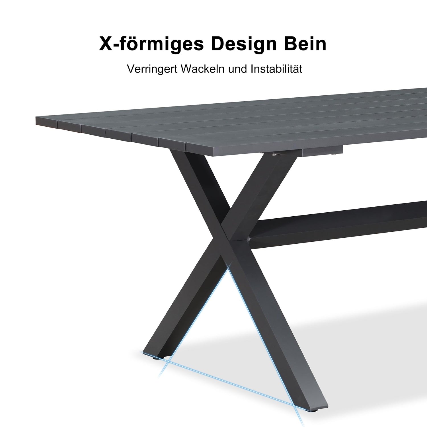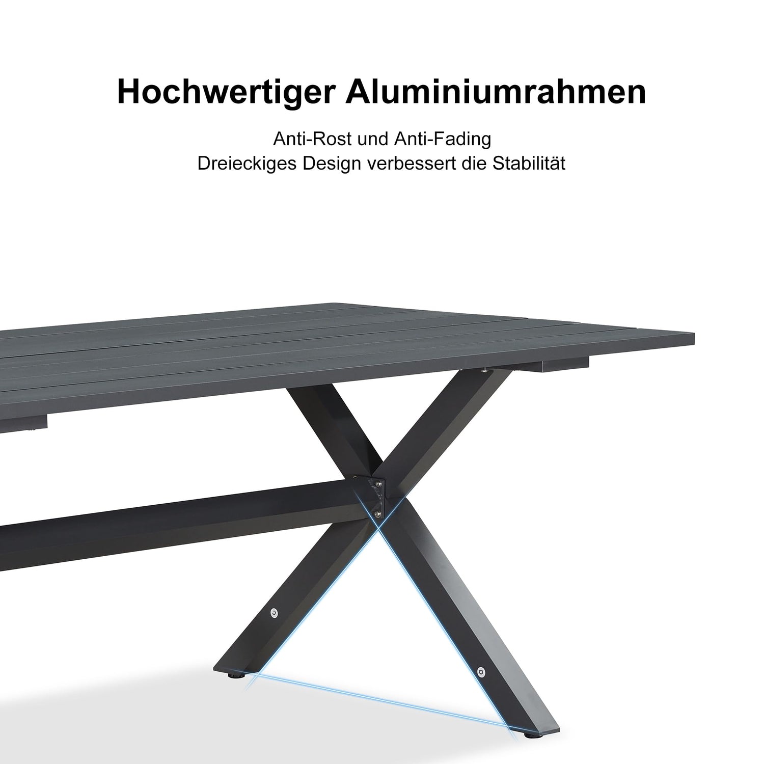 • Robuster Aluminiumrahmen: Mit einem Aluminiumrahmen bietet dieses Tisch- und Stuhlset für den Außenbereich außergewöhnliche Stabilität und Haltbarkeit. Die leichte und dennoch robuste Bauweise sorgt dafür, dass das Set auch in den kommenden Jahren solide und zuverlässig bleibt