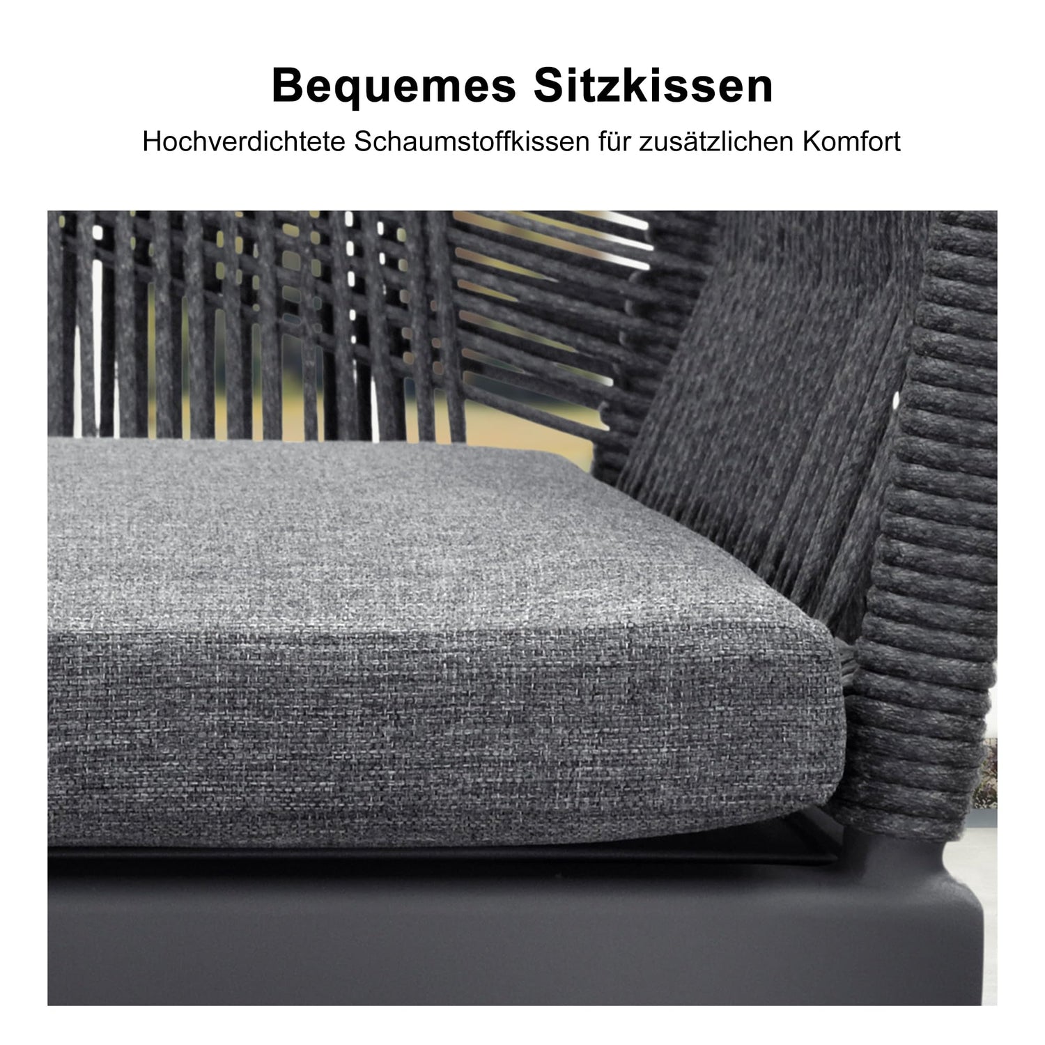 • Verwendung im Freien: Dieses Essset für den Außenbereich eignet sich perfekt für verschiedene Außenbereiche, einschließlich Garten, Balkon, Pool oder Rasen. Sein anpassungsfähiges Design ermöglicht es Ihnen, einen komfortablen und einladenden Raum zu schaffen, wo immer Sie möchten