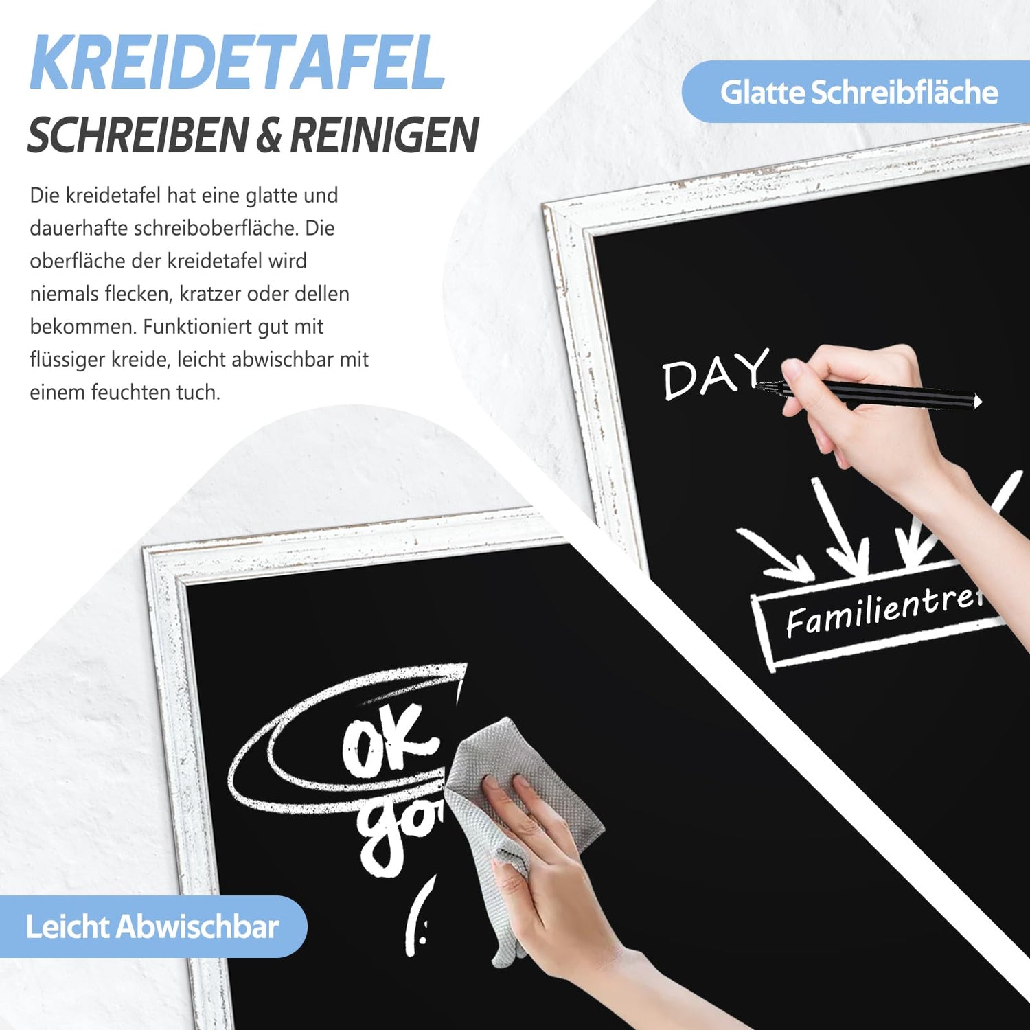 • 【Stabiler dekorativer Rahmen】Vintage weißer MDF-rahmen fügt einen vintage-stil hinzu kann zu jedem dekorativen stil passen. Es kann als nachrichtentafel als erinnerung an die dinge verwendet werden, so dass sie ihre inspiration jederzeit und überall aufzeichnen können, oder als eine personalisierte dekoration für ihren eigenen raum. Ob für büro oder zuhause, unsere kreidetafel ist eine ausgezeichnete wahl