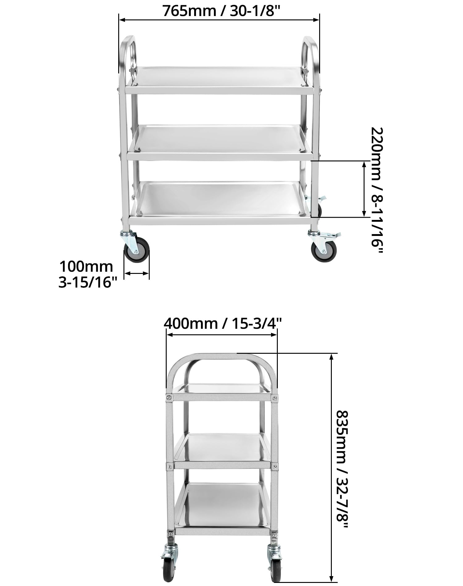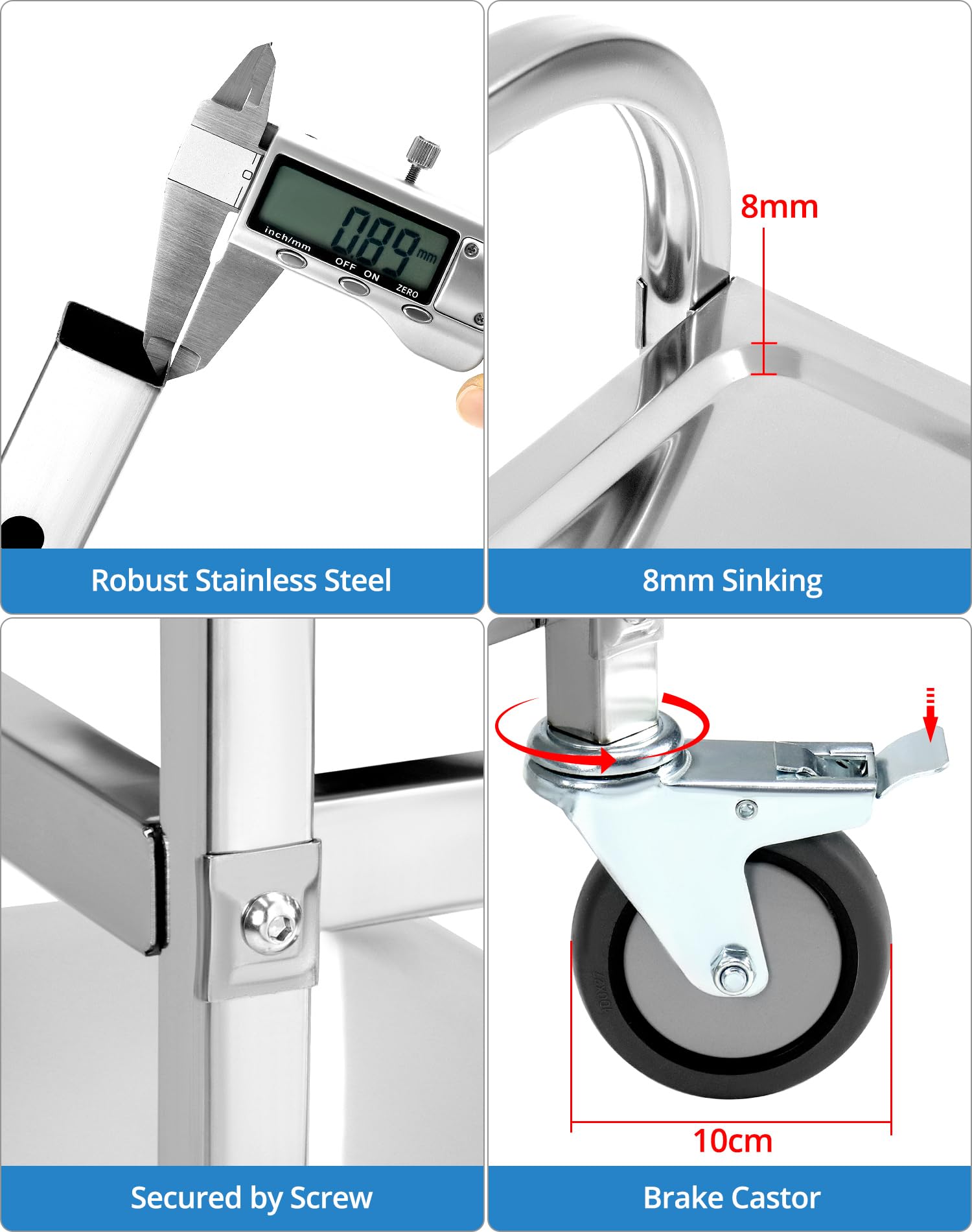 • Hohe Qualität: Der Küchenwagen besteht aus hochwertigem Edelstahl und ist nicht leicht zu rosten oder zu korrodieren. Polierprozess, glatte Oberfläche, leicht zu reinigen