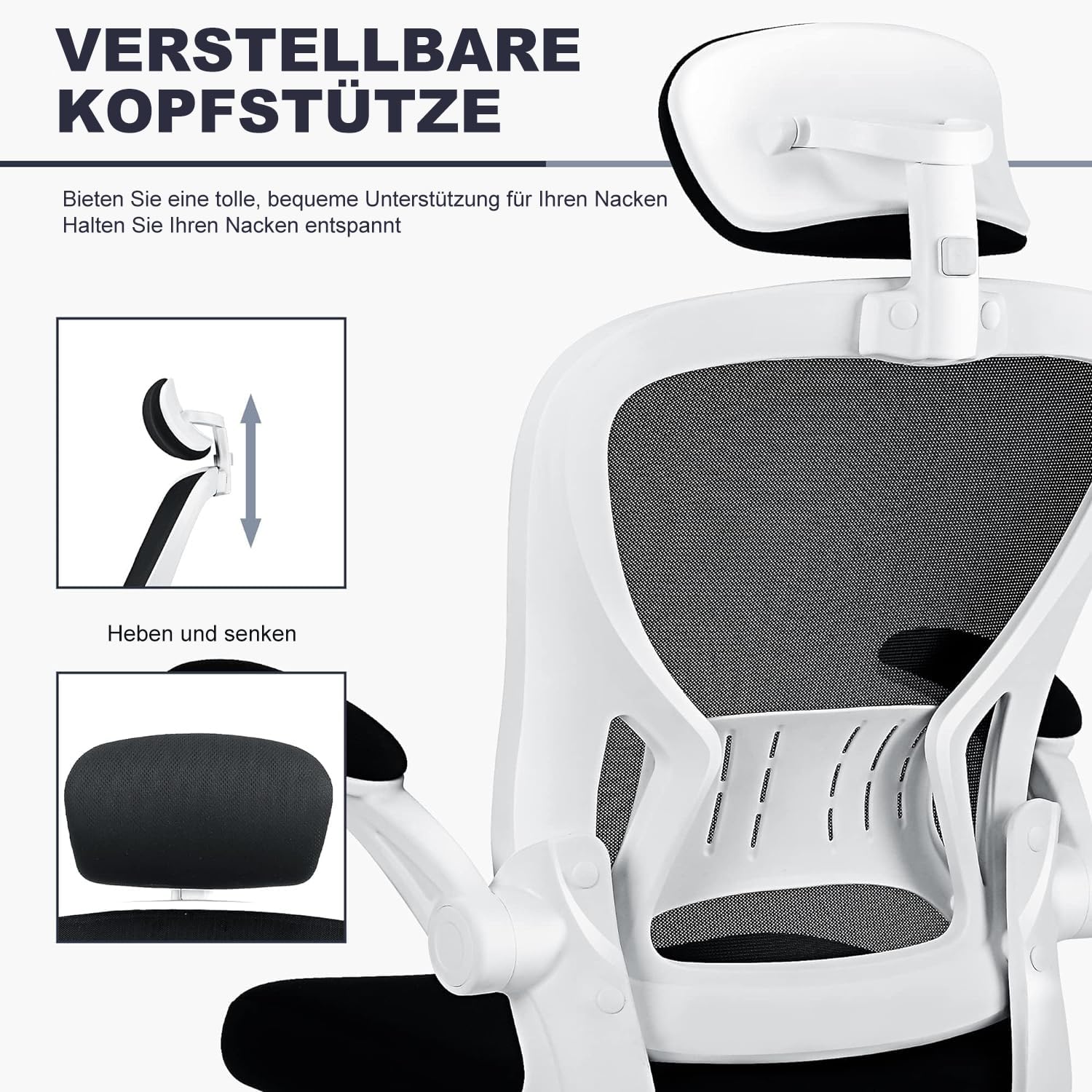 • 【Hochwertiges Material, Atmungsaktiv und Bequem】 Die Rückenlehne und die Kopfstütze bestehen aus hochwertigem, atmungsaktivem Polyesternetz, um Sie kühl und bequem zu halten. Das mit hochdichtem Schaumstoff gefüllte Sitzkissen widersteht Verformungen und bietet so eine Unterstützung, die den ganzen Tag anhält. Basis mit hoher Tragfähigkeit und leichtgängigen und schallgedämpften Rollen, maximale Tragfähigkeit 150 kg.