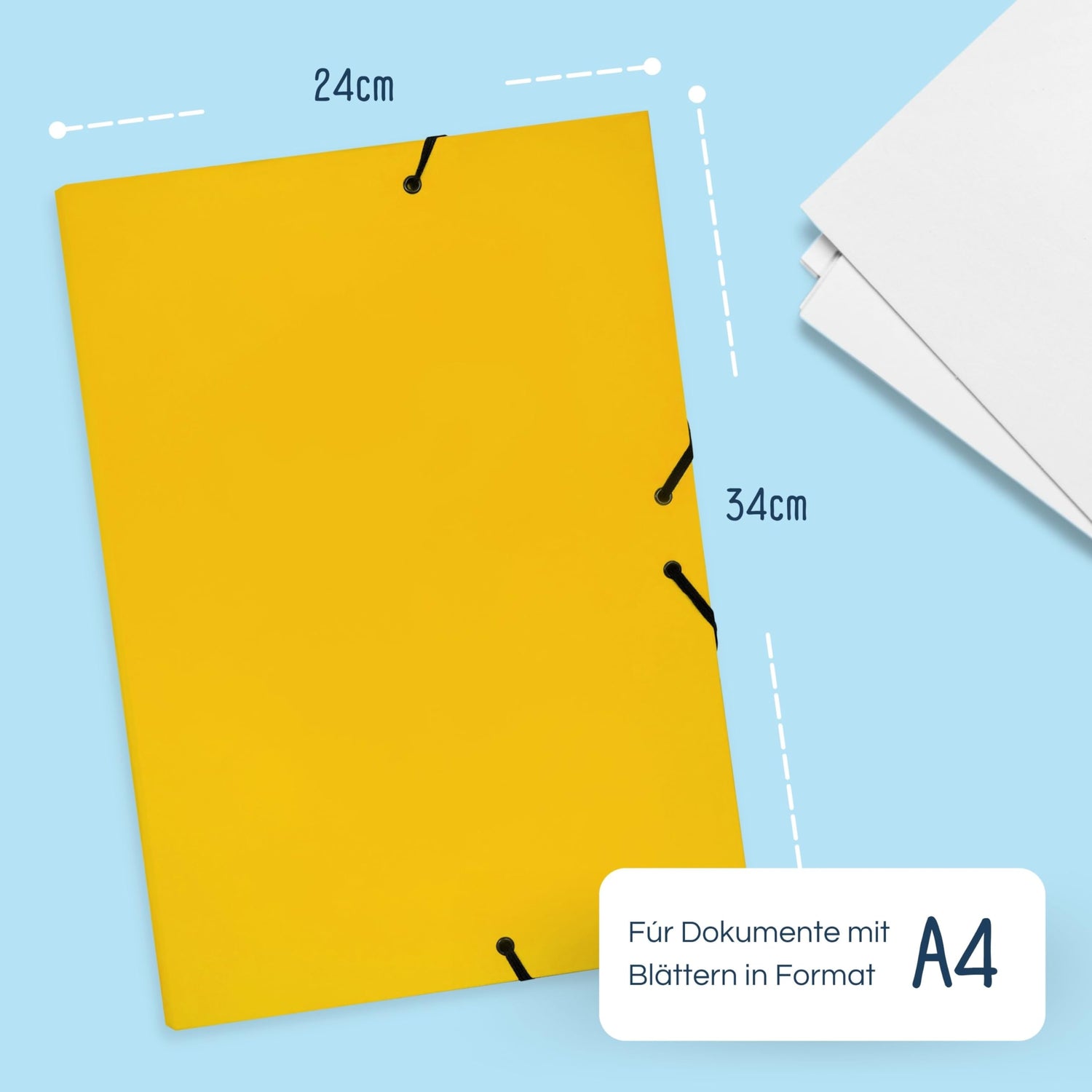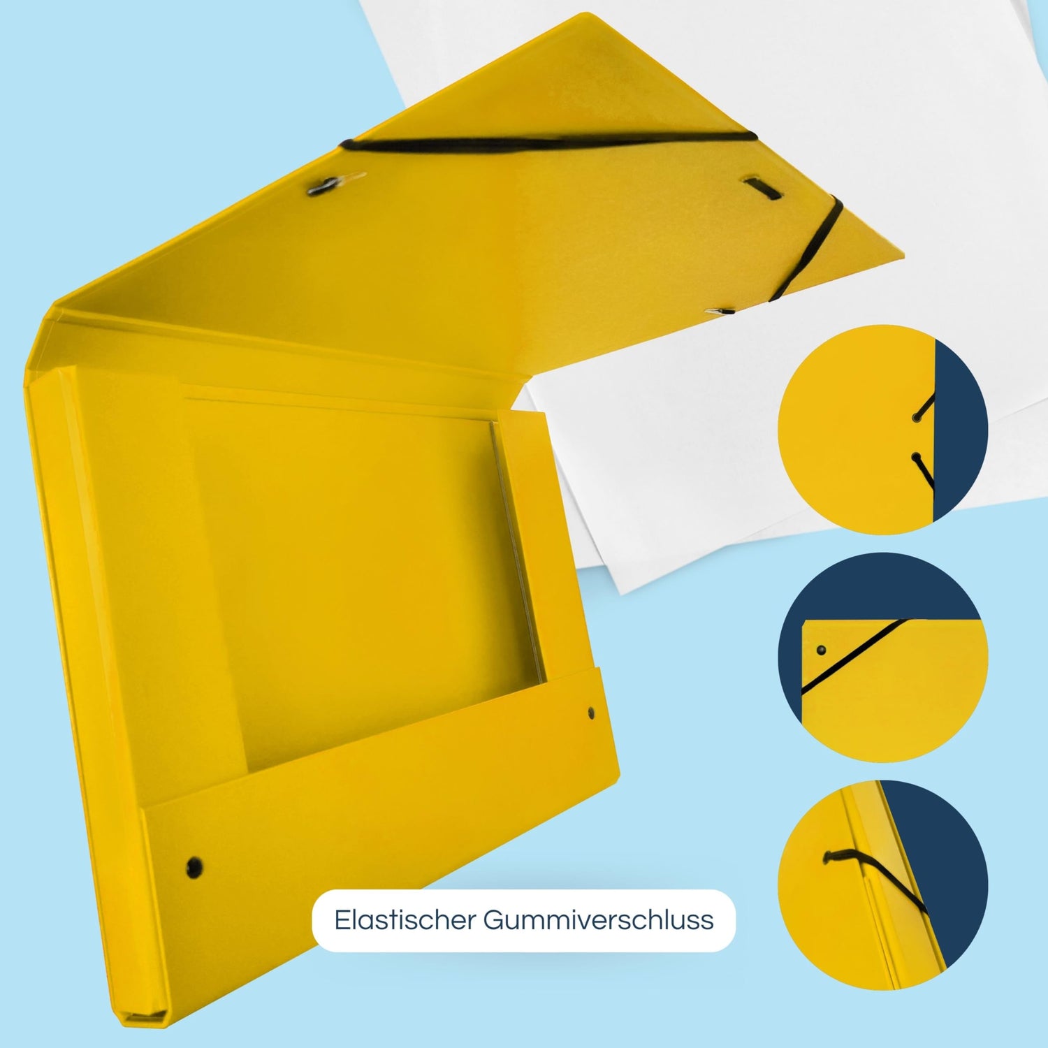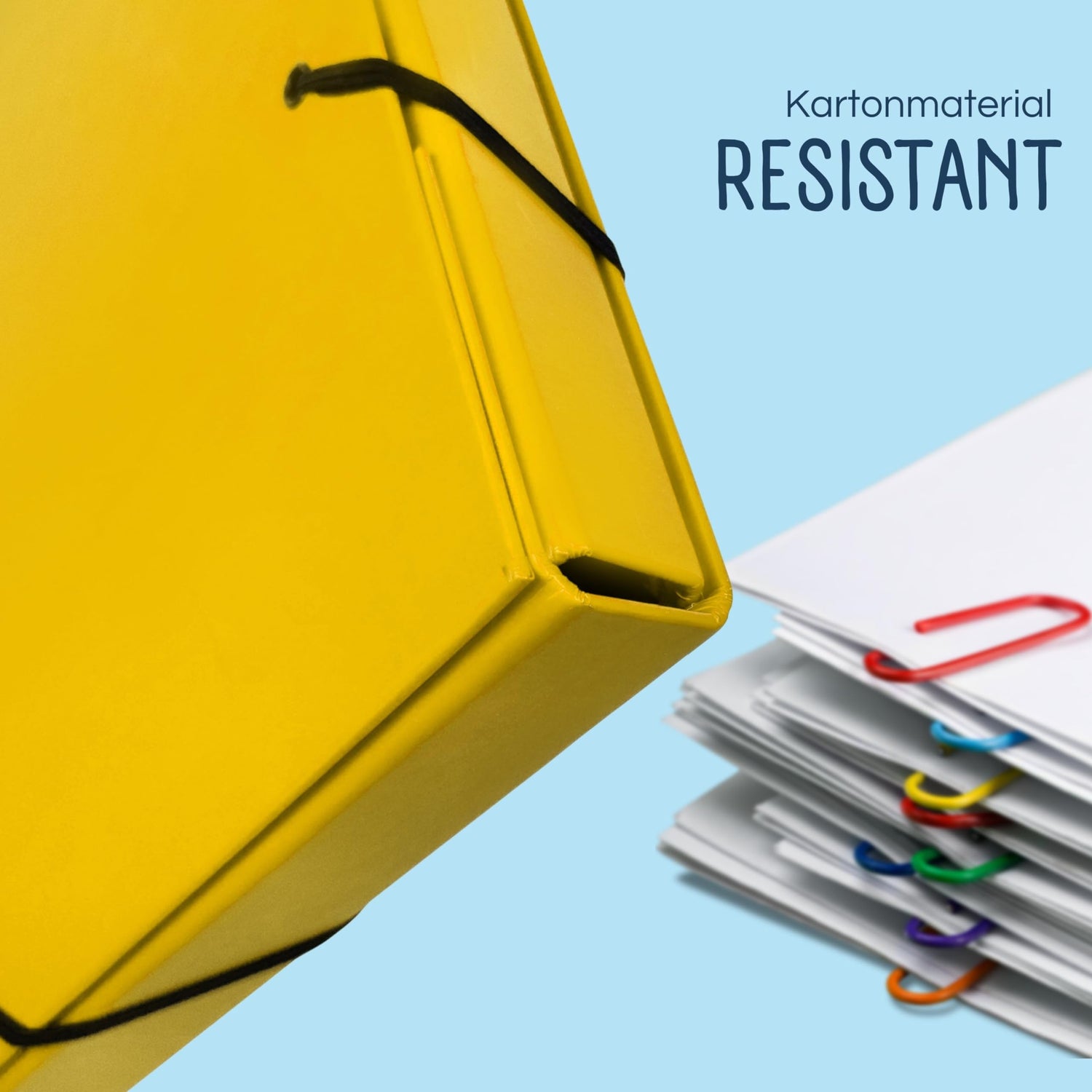 Raylu Paper Projektmappe Matt A4 mit 3 cm Rückenbreite, stabile Kartonmappe und Verschluss mit Gummibändern für Schulprojekte oder Büro, Größe 34 x 24 cm (Gelb)