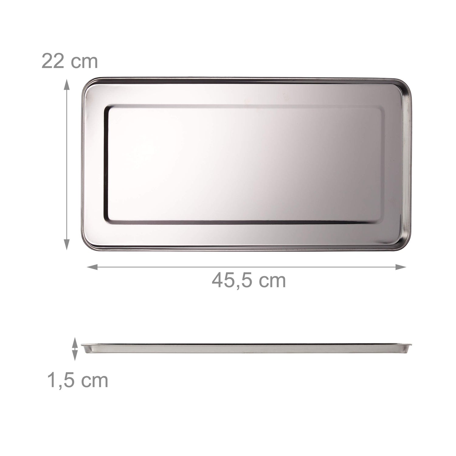 • Eckig: Anrichteplatten im praktischen 3er Set - Aus glänzendem Edelstahl - HBT: ca. 1,5 x 45,5 x 22 cm