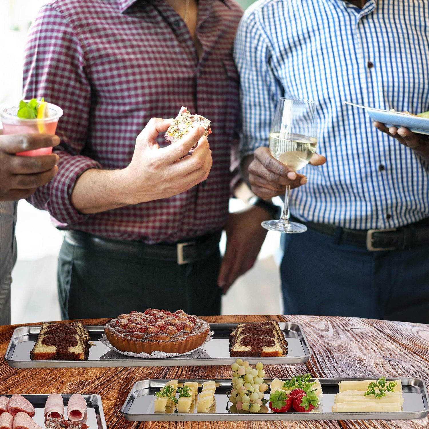 Relaxdays 10030060_59 Servierplatte, 3er Set, Edelstahl, spülmaschinenfest, Wurst, Käse, Party, Schlemmerplatte, 45,5x22 cm, Silber