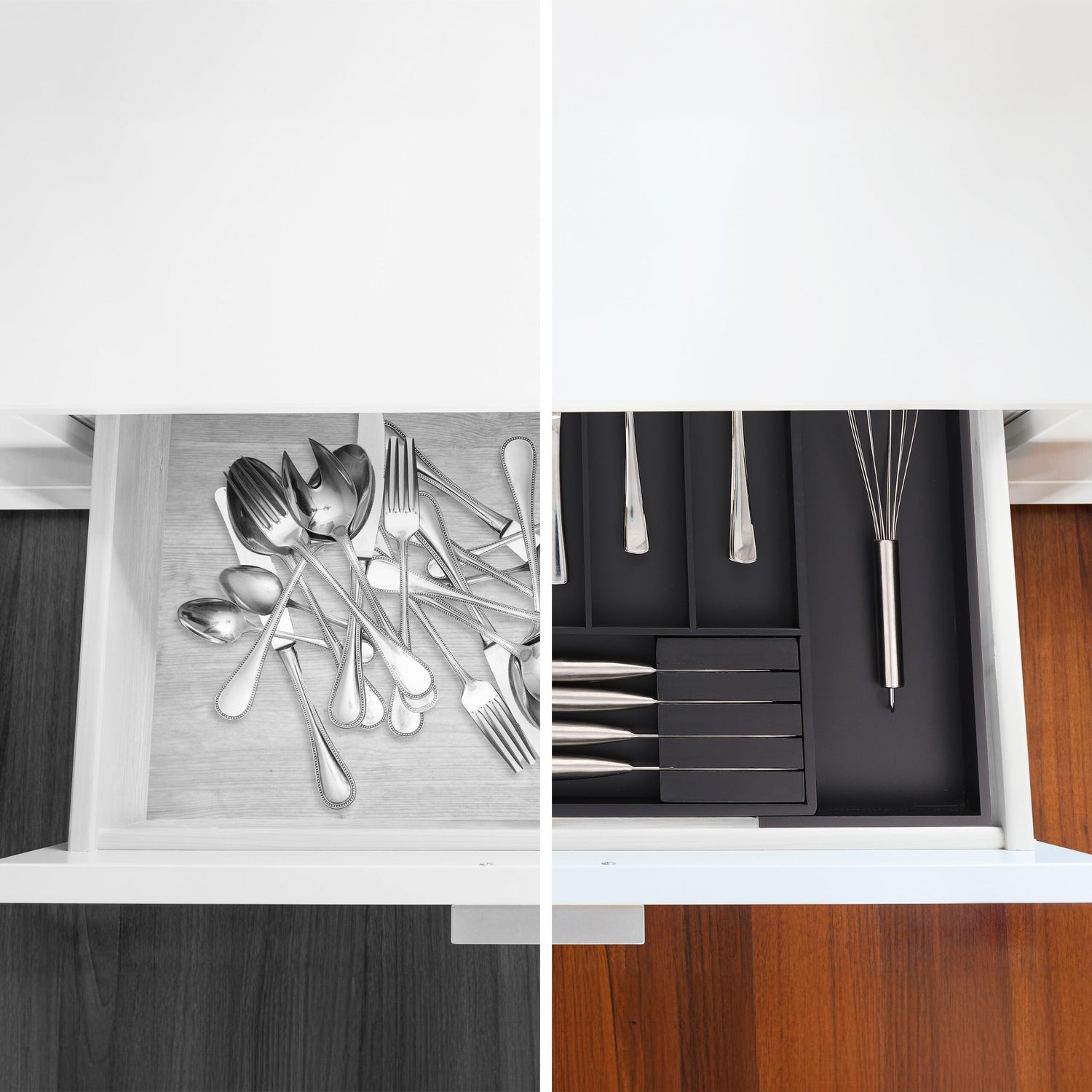 • Aufbewahrung: Schubladen-Organizer für Ess- und Kochbesteck - Inklusive Messereinsatz für 4 Messer