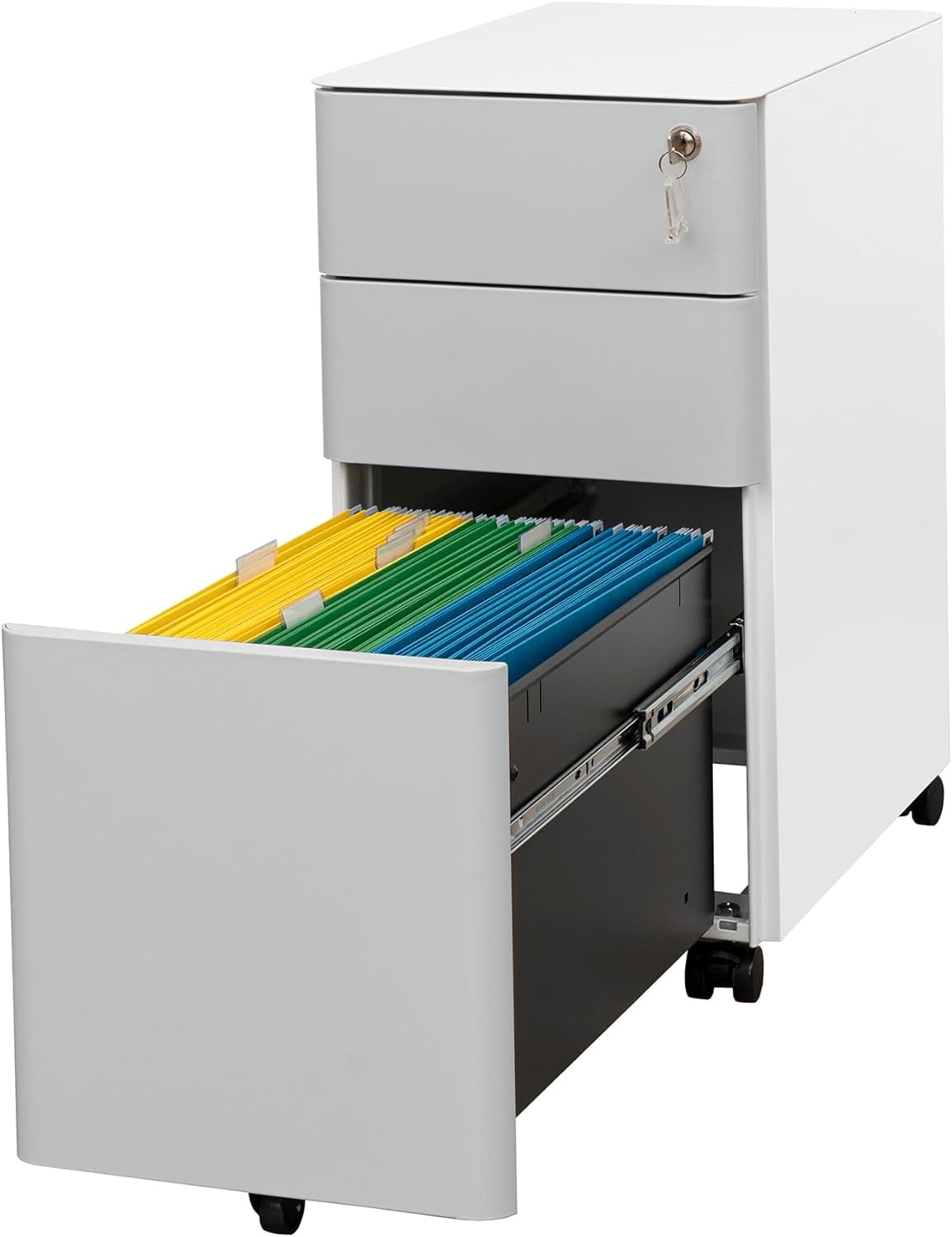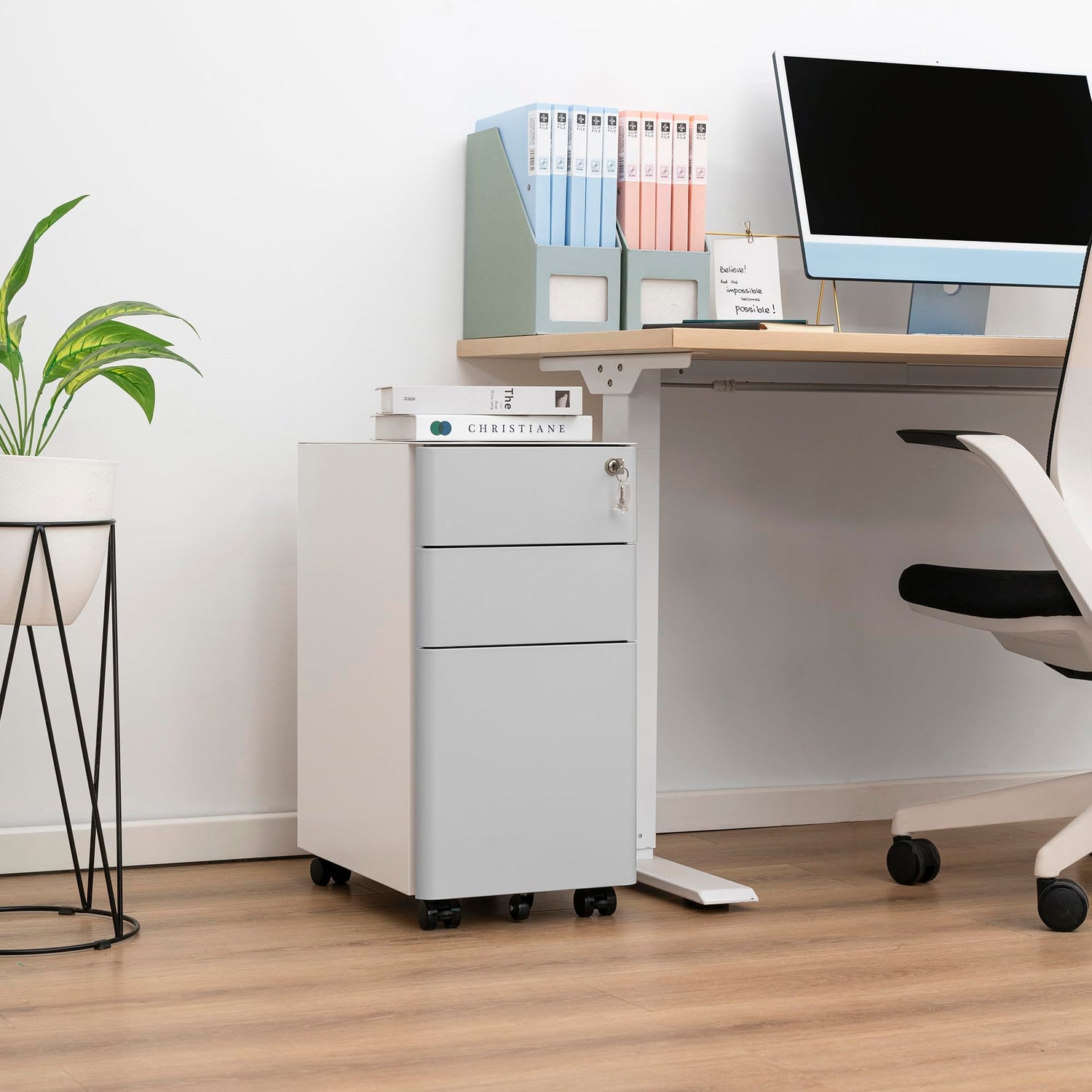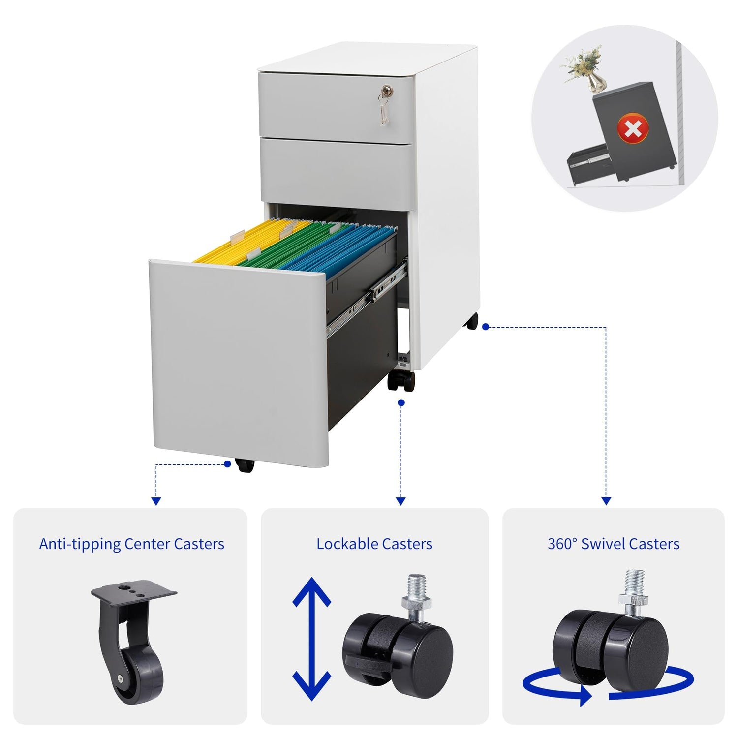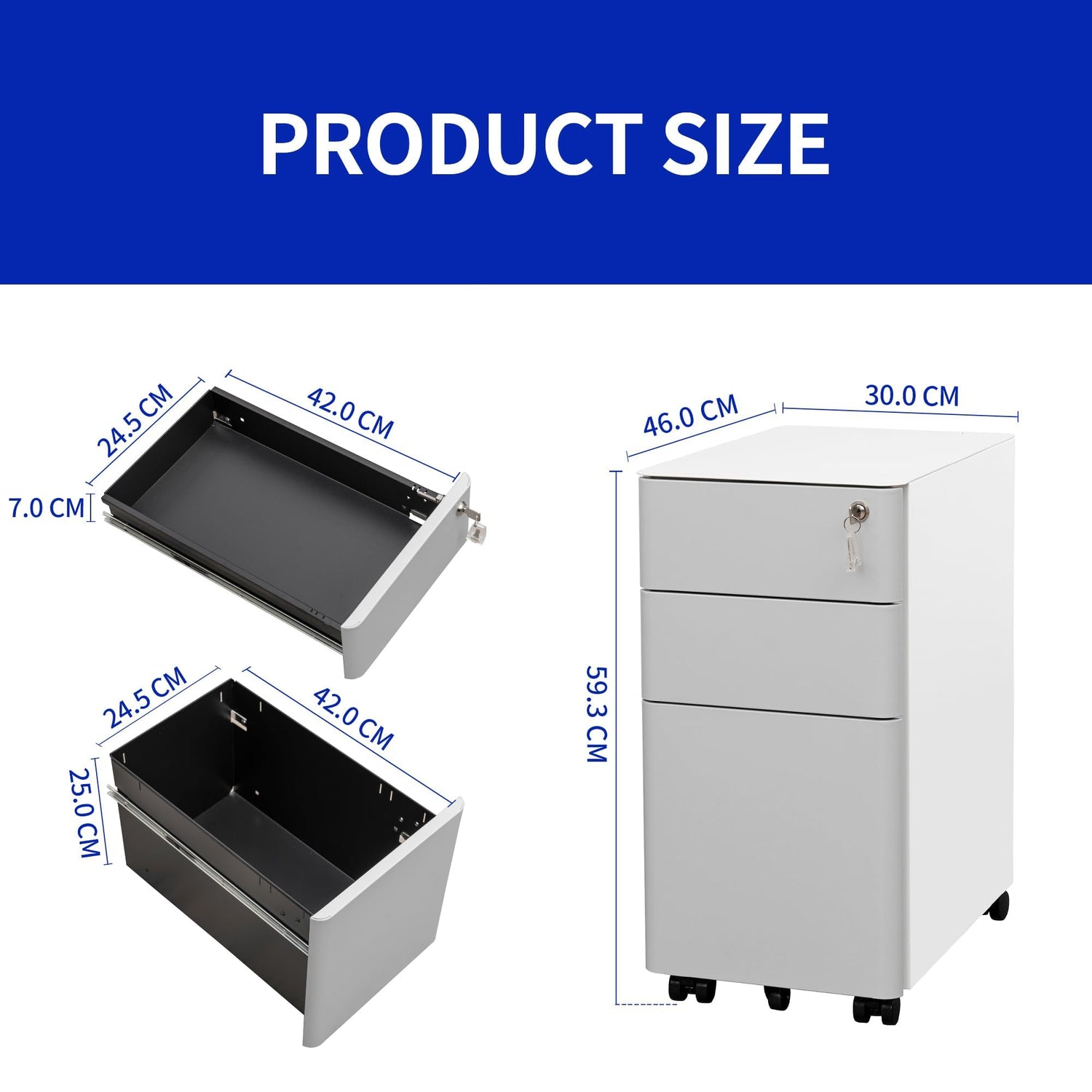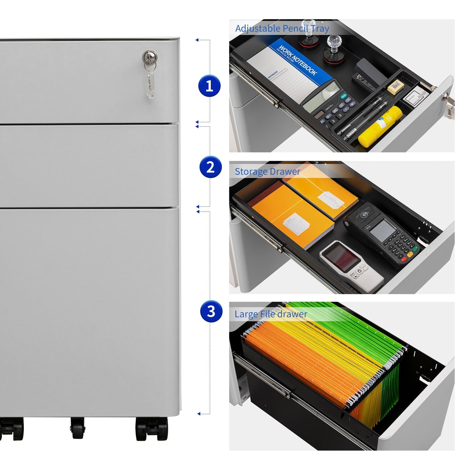 • [Sicheres Verriegelungssystem]:Der Untertisch-Metall-Aktenschrank verwendet ein Verriegelungssystem, das alle drei Schubladen gleichzeitig verriegelt, und wird mit zwei Schlüsseln geliefert, um Ihre Privatsphäre und die Sicherheit Ihrer Akten zu schützen, wobei einer davon als Ersatzschlüssel verwendet werden kann.