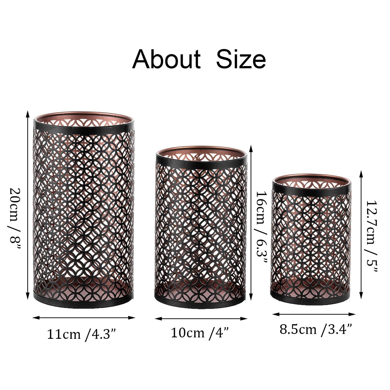 • Messung: 3 verschiedene Größen erhältlich, Groß: 11 cm × 20 cm, Mittel: 10 cm × 16 cm, Klein 8,5 cm × 12,7 cm (B × H), passend für Säule, Votiv, Stumpenkerze, Teelicht und flammenlose LED-Kerze