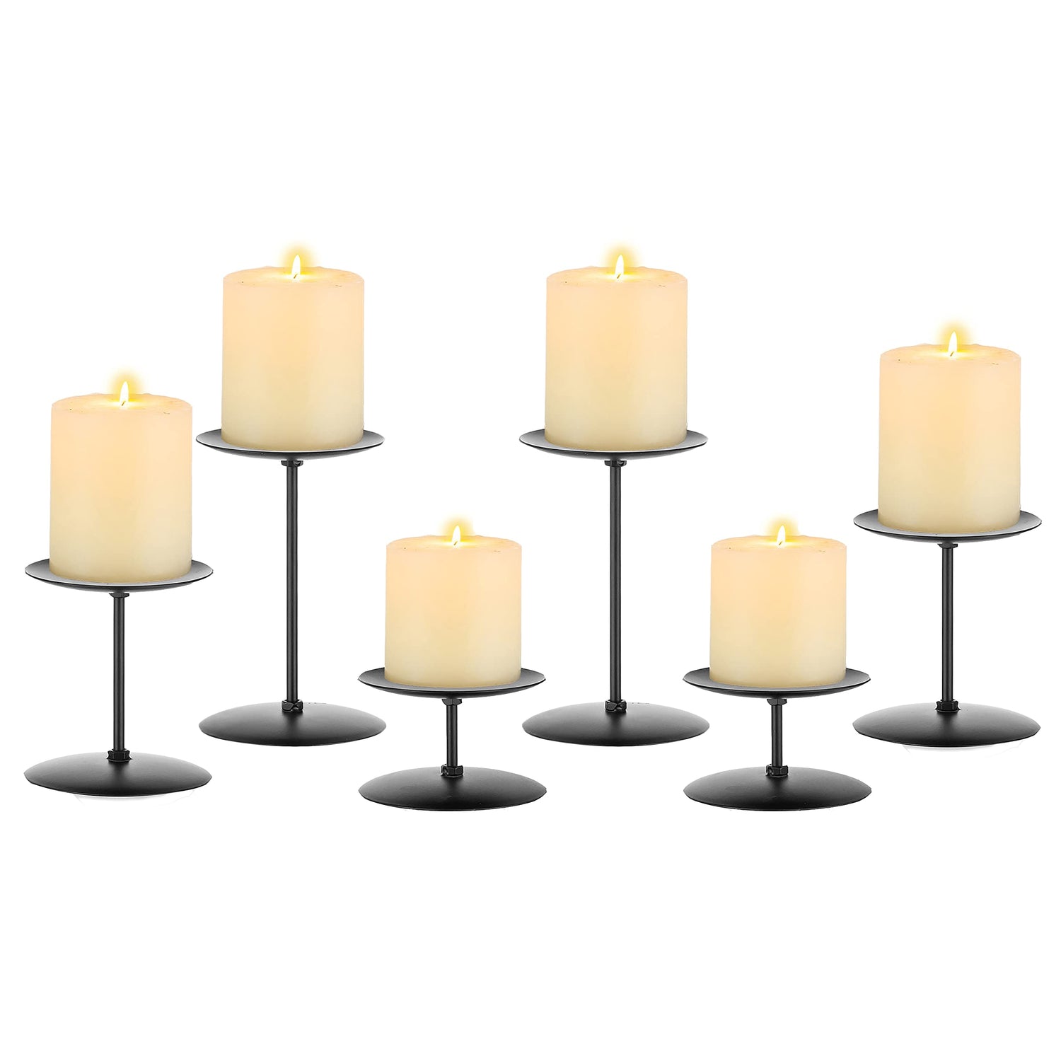 Romadedi Metall Kerzenständer Kerzenhalter Schwarz – für Stumpenkerzen Kerzen Adventskranz 6er Set, Unterschiedlicher Größe Vintage Modern Deko Tischdeko für Weihnachten Hochzeit Wohnzimmer