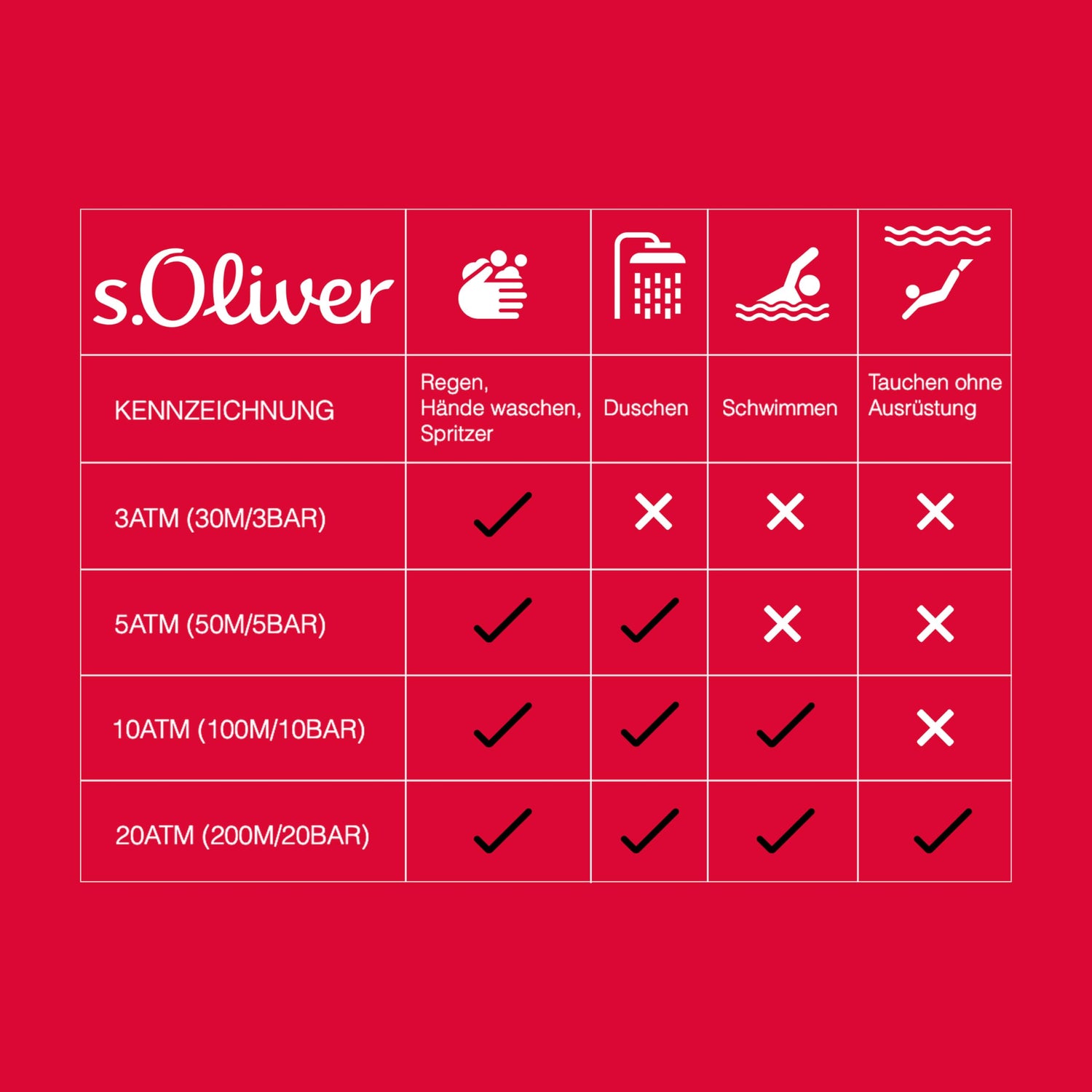 • Diese Uhr der Marke s.Oliver ist bis zu 3 Bar wasserdicht und mit einem hochwertigen Citizen Miyota Uhrwerk ausgestattet